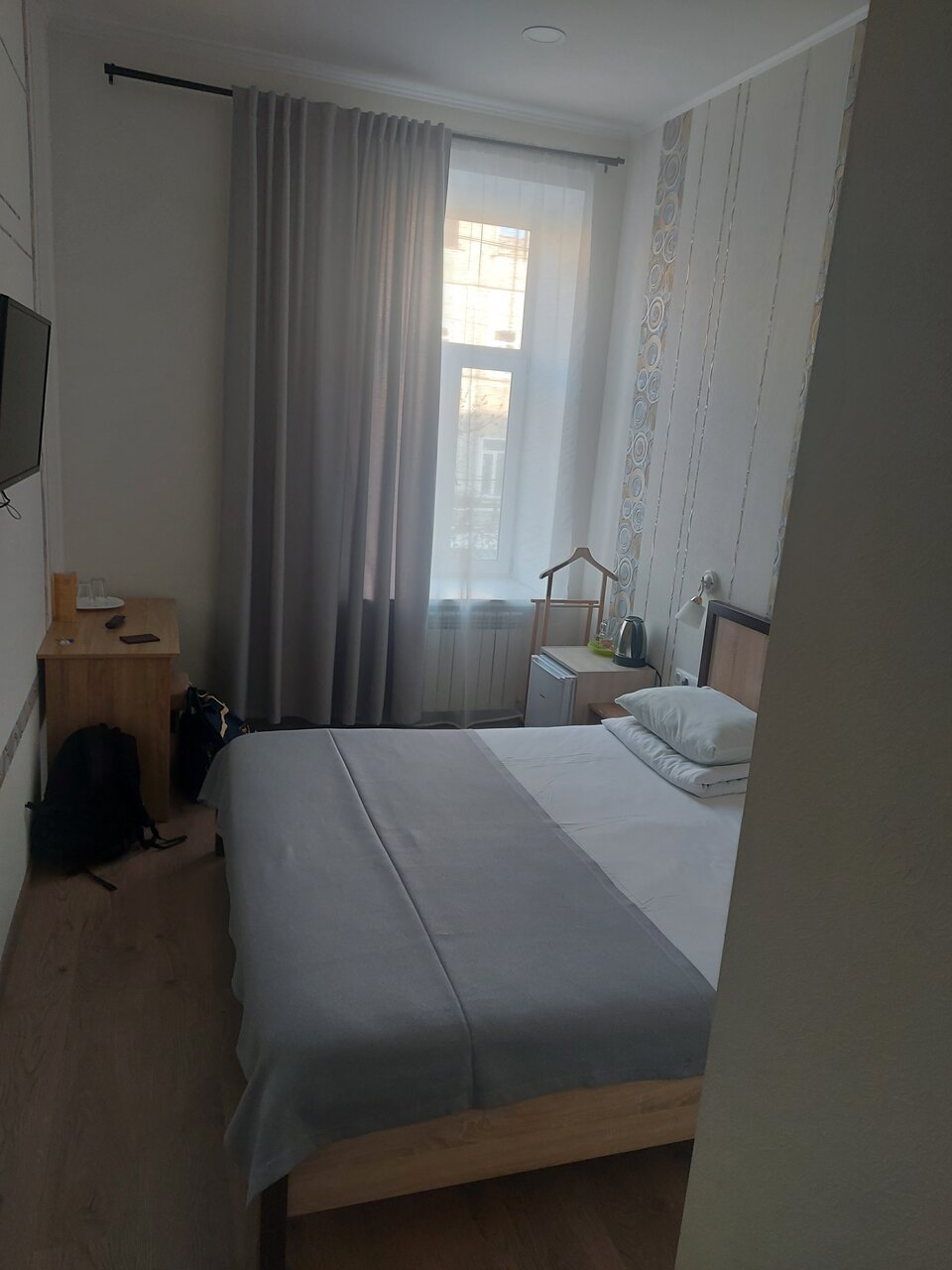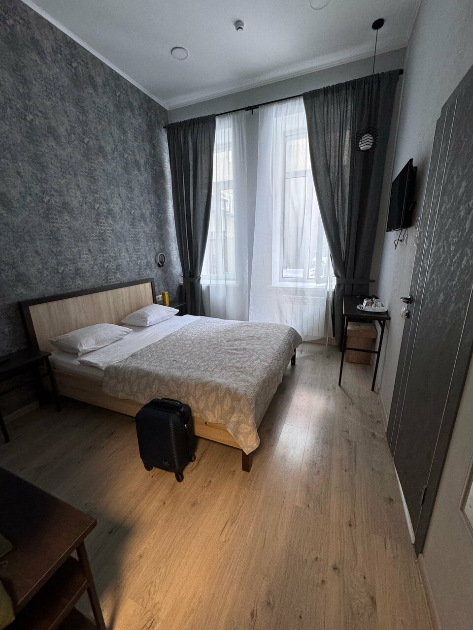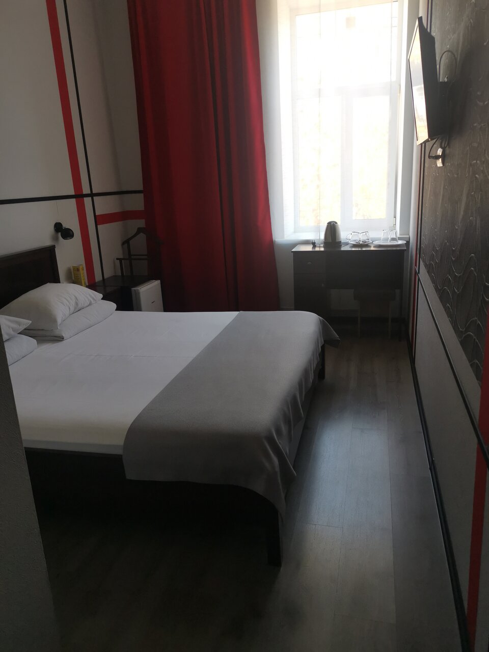 Замечательный теплый и на удивление тихий номер, (окна выходили на проезжую часть) в комнате очень большая удобная кровать, чистое постельное белье, просторная душевая с шампунями, белыми полотенцами, шикарное местоположение все кафе и достопримечательности рядом, близко от кассационного суда по этому для меня местоположение подошло идеально. Персонал очень улыбчивый и доброжелательный! Обязательно остановлюсь тут ещё!