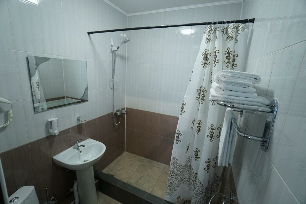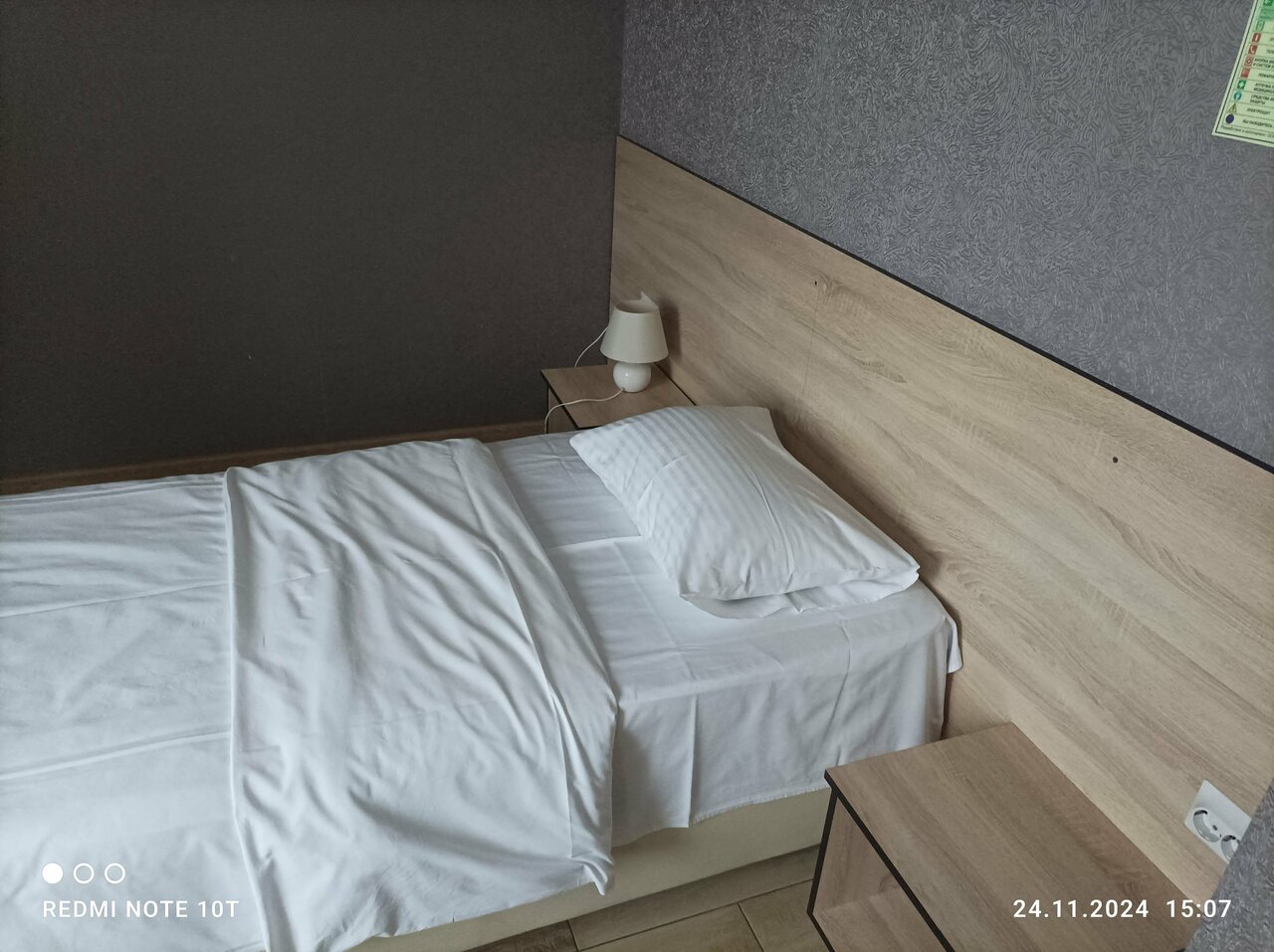 Гостиница не плохая, чистый номер, не плохой ремонт, есть кондиционер, телевизор, в ванной есть мыльные принадлежности (гель для душа, шампунь, зуб паста и щетка в наборе), фен. В номере не хватает чайника и чайной посуды, чтобы попить чай нужно спуститься вниз, в столовую, не удобно ( там чайники и посуда). А так переночевать можно. Завтраки входят в стоимость, оценить не могу, не пробовали, уехали раньше 7 часов.