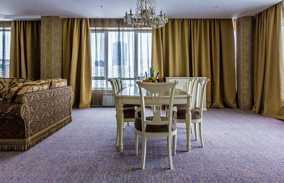 С 06 на 07.11.2020 арендовали номер в Эре на 12 этаже. Кроме красивого номера больше никаких плюсов. Никаких. Стоимость номера 15000!!! Напор горячей воды очень слабый, сходить в душ из-за этого проблема. Завтрак принесли в номер в пластиковых контейнерах!! Отель 3 звёзды, 15000 за номер, а завтрак в пластиковых одноразовых контейнерах. Штора на одном окне отваливается (там где рулонные шторы, среднее окно). И на фото это очень заметно( (номер выбирали для последующей фотосессии). Вообщем за такую стоимость (15000) не рекомендую.