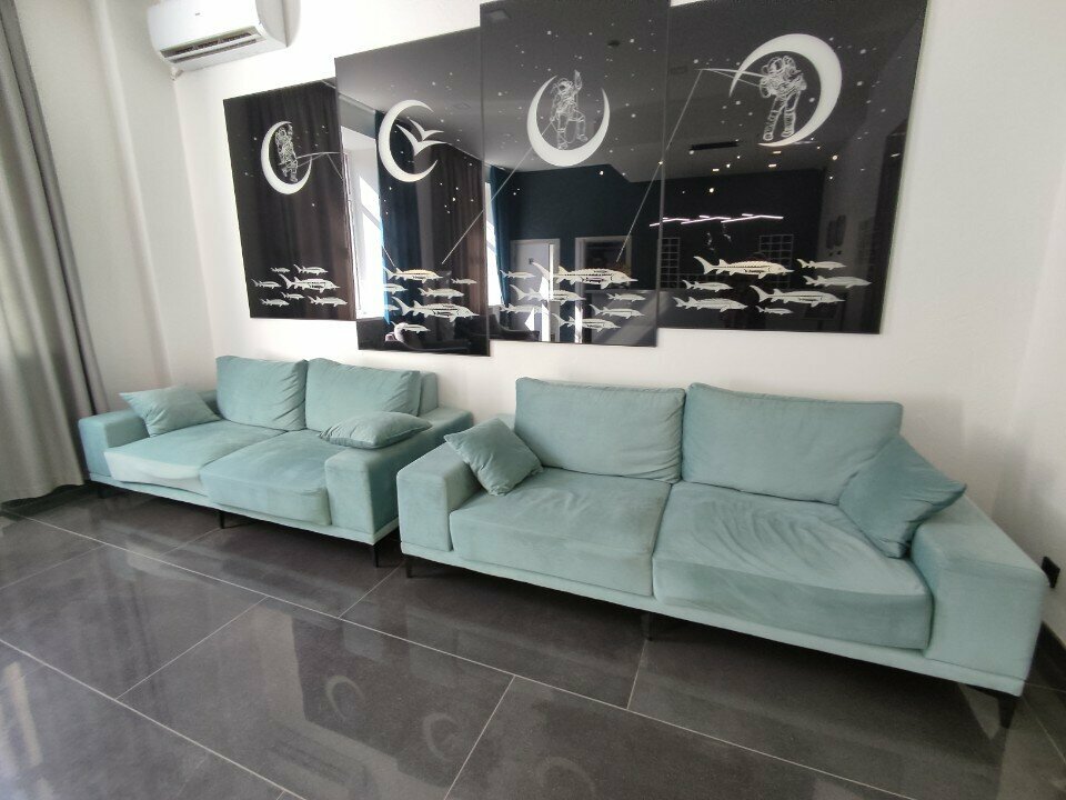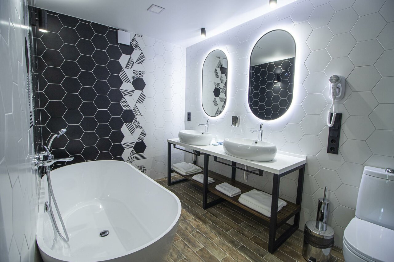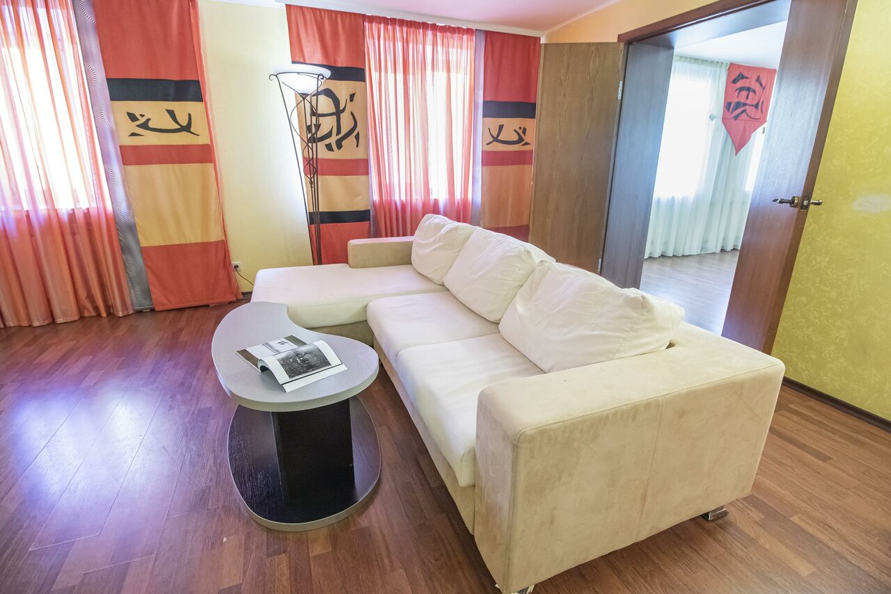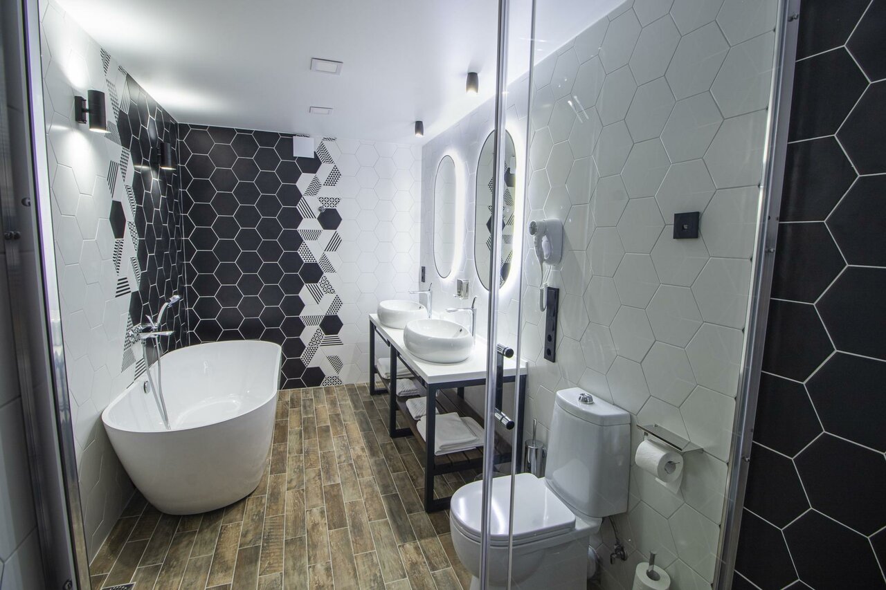 Номер Люкс (lux) - площадью 40 кв.м., состоящий из двух жилых комнат - гостиной и спальни - и двух санузлов.Номер вмещает до четырех гостей и оборудован кондиционером, дизайнерской ванной комнатой, большой душевой кабиной и теплым полом во всем ном