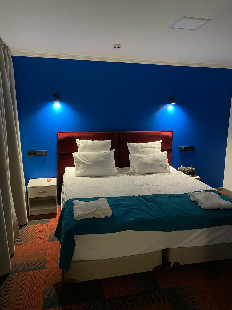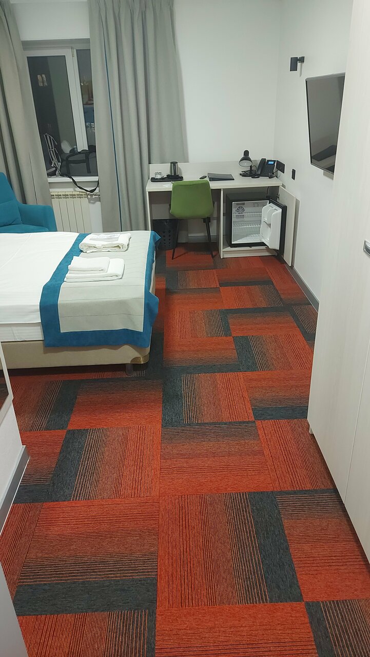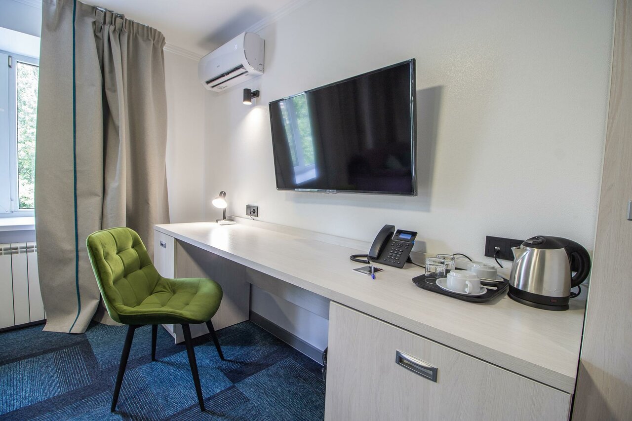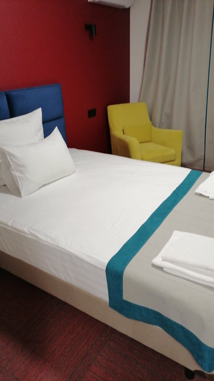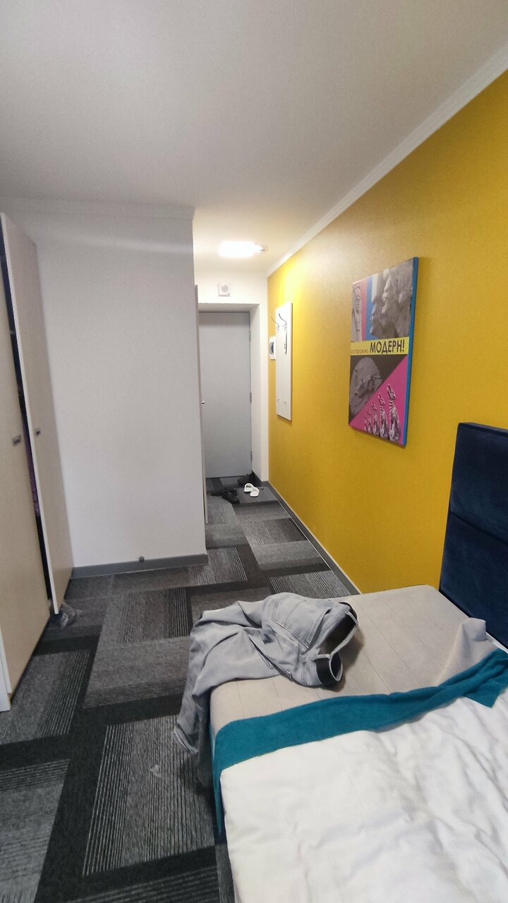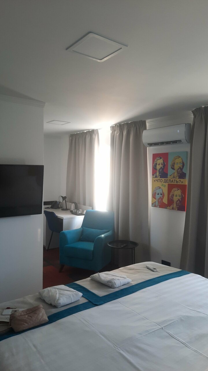 В целом но плохая гостиница. Только в номере пованивает когда кондиционер включаешь. Да и без него иногда. Наверное кондиционер стоило бы почистить. Или я не знаю откуда такой запах. Второй момент, кровать слабенькая, хлипкая. Шатается. Я видел пару вылезших болтов. третий момент, освещение слабое. Четвёртый момент, всего один стул. Это полулюкс как-бы, Гости придут их и посадить некуда. Пятый момент, неудобное расположение розеток. Если будет когда-то ремонт то стоит об этом позаботиться. В остальном всё хорошо.