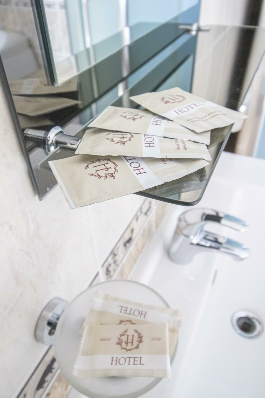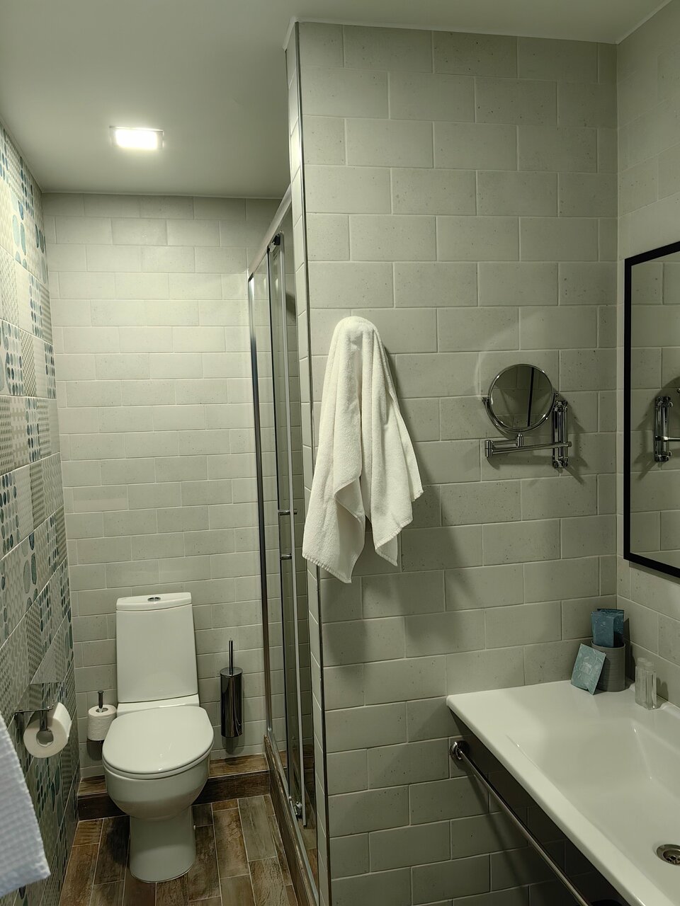- Комплект полотенец, халат, гигиенические принадлежности.