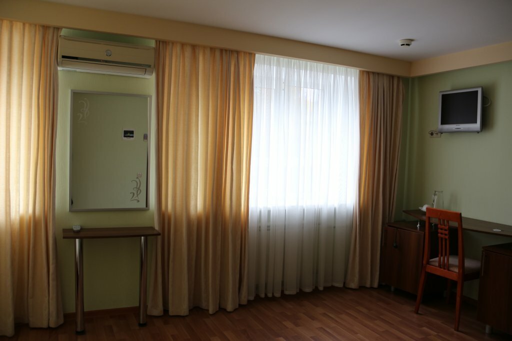 Хорошее только расположение. ‘Общее кондиционирования воздуха’ вообще не справляется со своей задачей, из-за чего в номерах душно приходится отдыхать с открытым окошком. А на улицах очень шумно. Ночью то сигналят то с музыкой приедут и очень часто так. На этаже ночью пьяное тело ходило в гости к девочкам в номер. Потом девочки ходили к телу в номер, разговаривали, воняло сигаретами в коридоре. Хоть и заперещено у них это все, но есть подозрение! Что не просто так там эти девочки были. Вообще не поспал с дальней дороги, доманулись пораньше не выспавшись. Если сравнивать с другими отелями в этой ценовой категории то есть намного лучше. К примеру в Тюмени, город который куда дороже, я спокойно нашёл гостиницу за 2 тысячи с кондиционером и с завтраком. У которой была своя небольшая парковка за 100 рублей, а так же нормальная общая снаружи территории. Вобщем не советую.