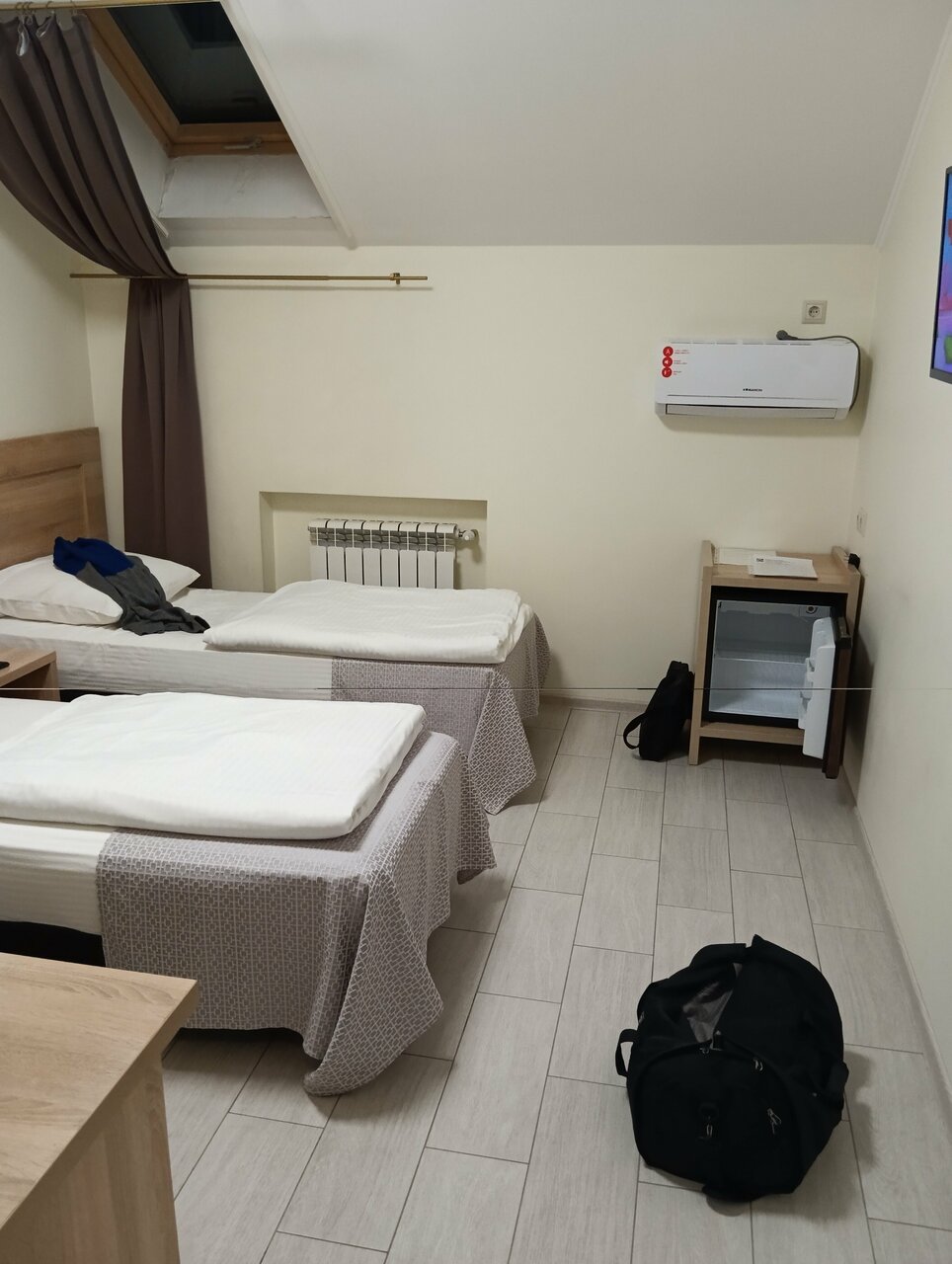 Из плюсов свежий ремонт. Минусы: Номер чуть больше кровати. Рядом проженный стул, в туалете несет канализацией. Никакая звукоизоляция. Волосы на постельном белье, пятна на полотенцах. 2 звезды за милую женщину, что готовит съедобные завтраки.