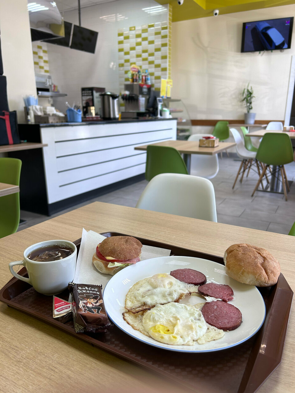 Чисто. В номере есть бутылка воды,чайник, чай. Нет тапочек,шампуня и т.п.,если кому принципиально). Но есть халаты. Полотенце застиранные. Мне не повезло, были немного шумные соседи были, но, это дело случая. Рядом пиццерия, можно покушать. Завтрак норм: яичница, чай/кофе растворимый,джем, бургер-бутерброд).
