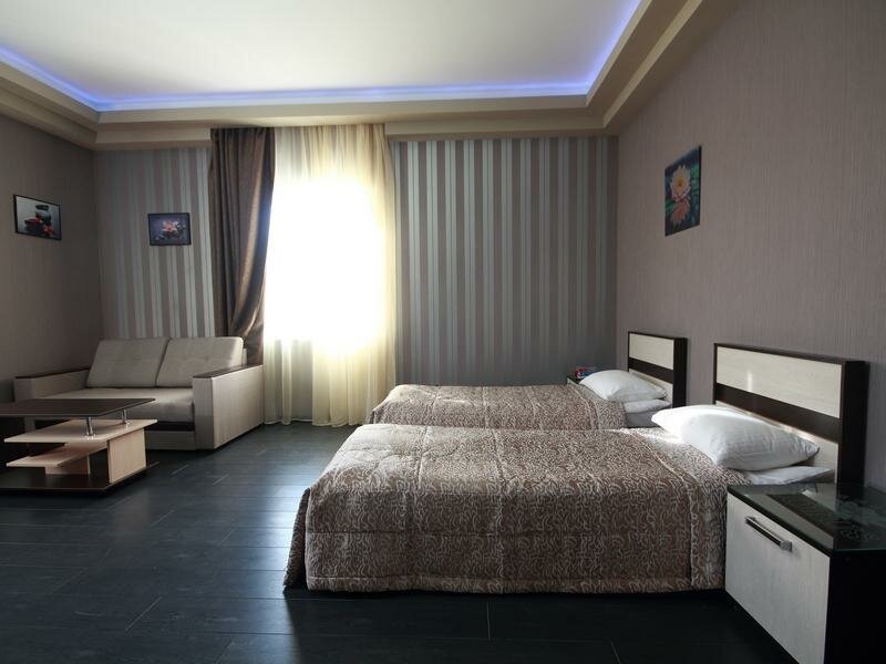 Номер 1но комнатный 16 - 18 кв.м.. Цена от 2500 руб. в сутки за номер на 2а человека. Доп.место для детей от 5 до 14 лет 300 руб в сутки на раскладном кресле. Дети до 5 лет размещение бесплатно.Бассей, парковка, интернет, уборка номера ежедневно.