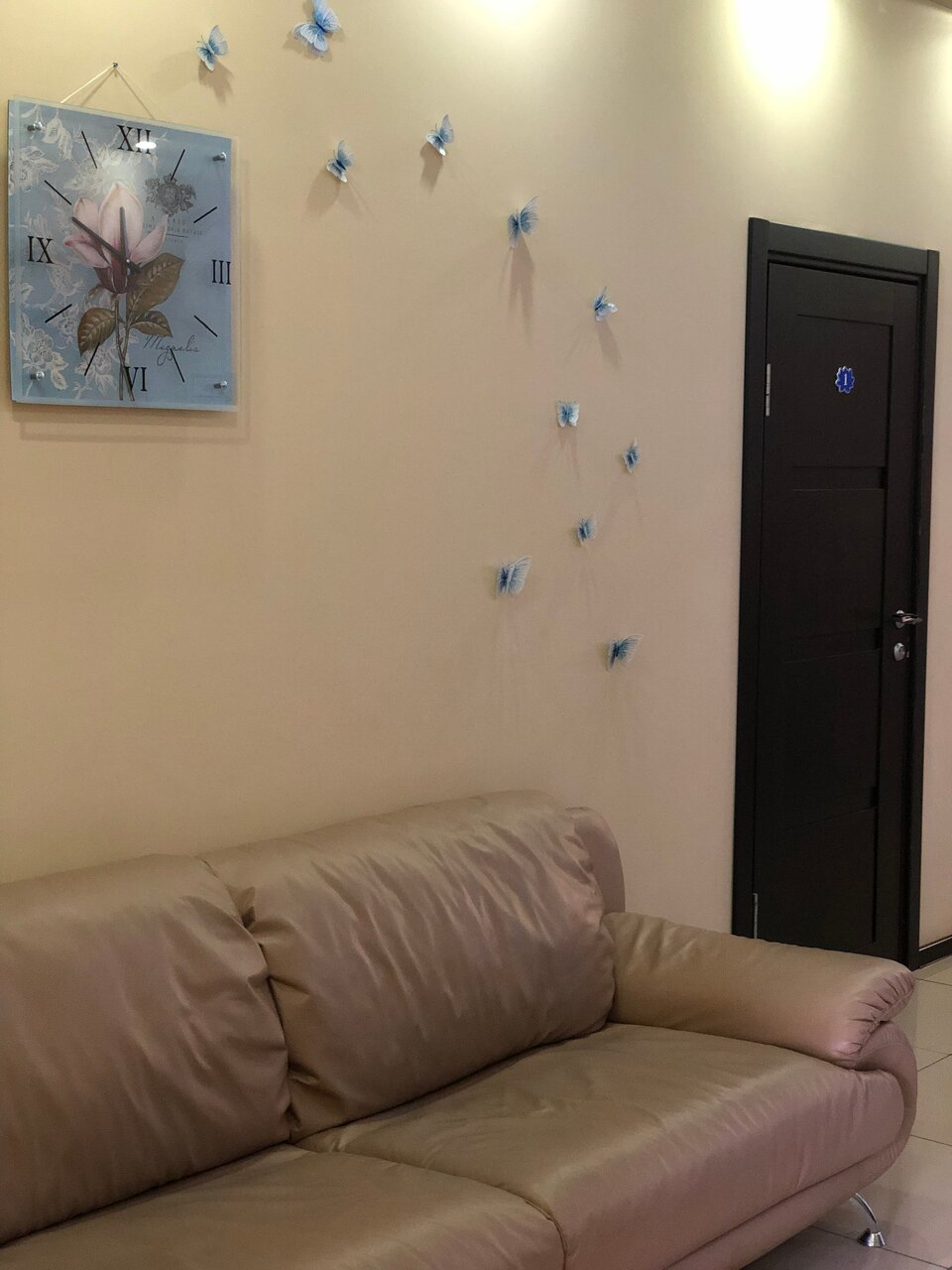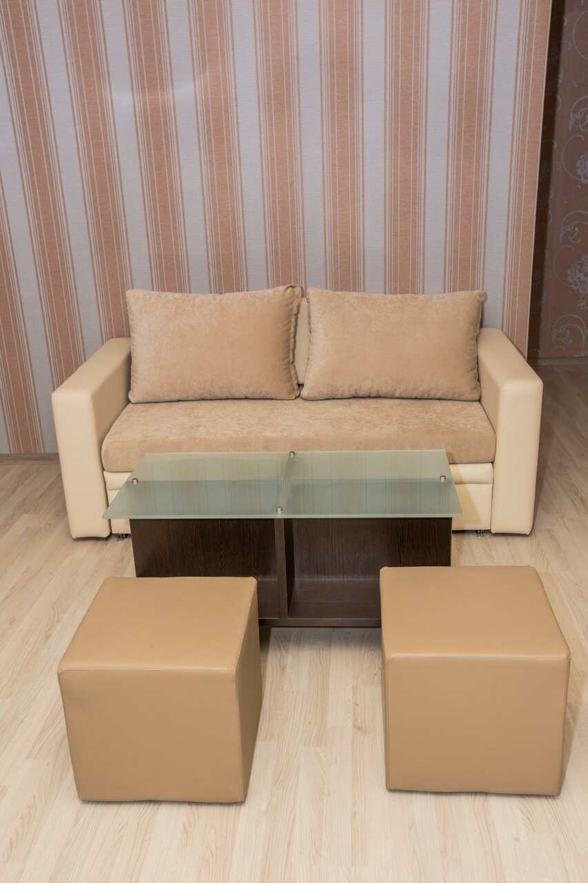 Номер 40 м.кв., цена от 3500 руб. в сутки на 4 человека. Комнаты раздельные. В номере два телевизора, два кондиционера, двуспальная кровать, раскладной диван, раскладное кресло, холодильник, эл.чайник, минимальный набор посуды.