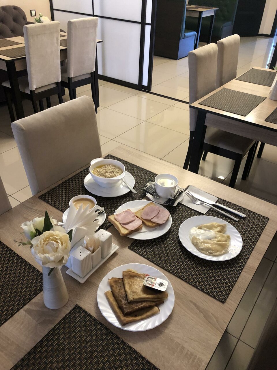 Хорошая гостиница. 3 варианта завтрака. На ужин можно из меню выбрать. Очень вкусно. Парковки нормальной правда нет. Максимум 3 машины могут поместиться