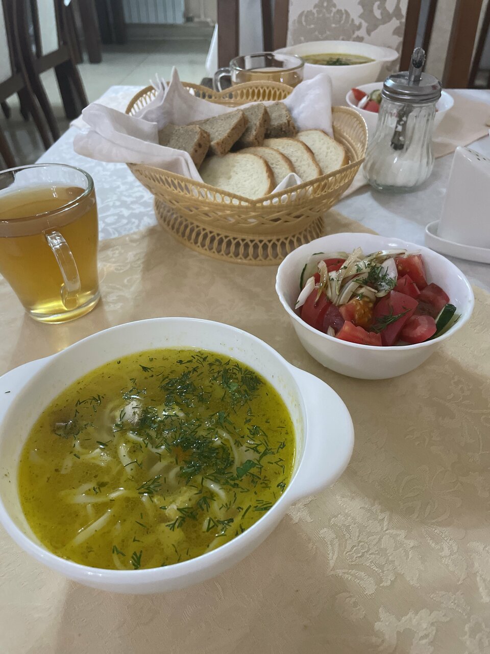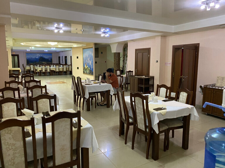 Неплохая гостиница, можно поужинать за 450 рублей, ресторан работает до 23.00, позавтракать за 500 , наесться не получиться, в номере не рабочий душ и тараканы , но при этом вполне чисто, переночевать и ехать дальше, оставаться на несколько ночей я бы не стал.