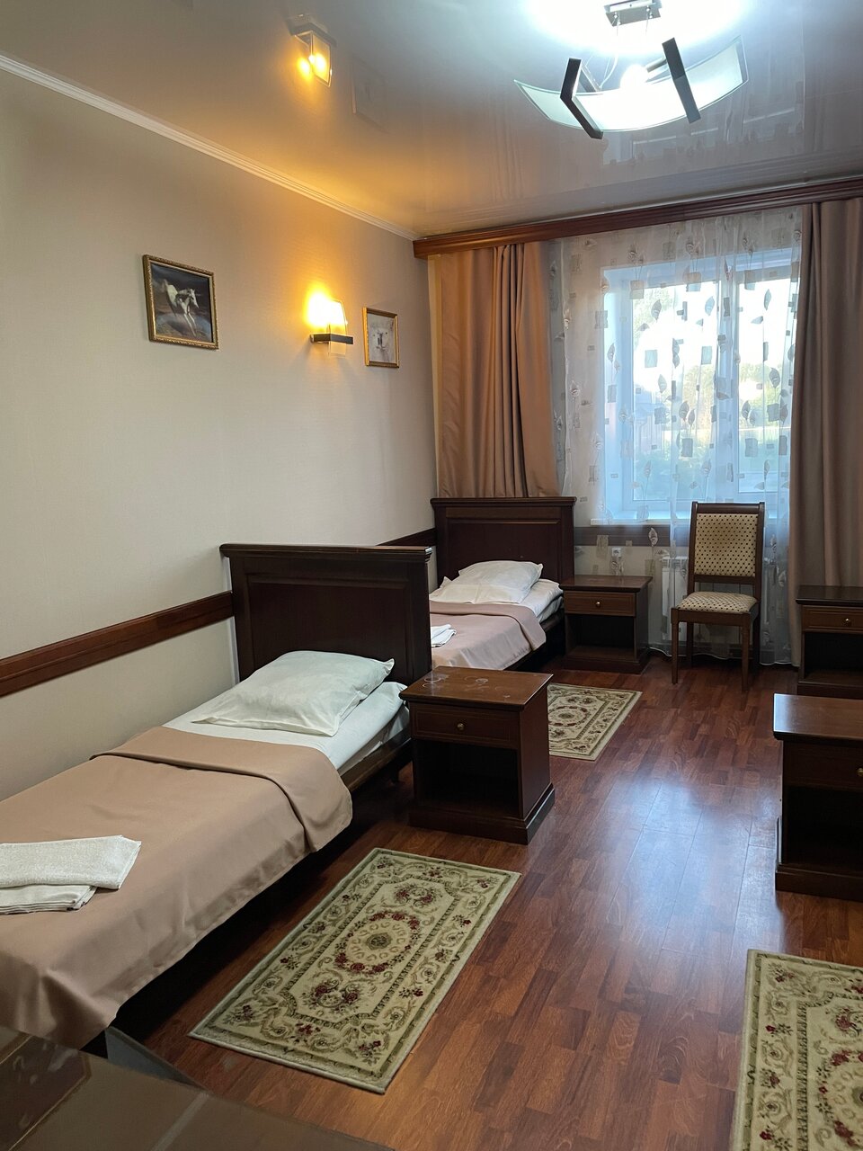 Гостиница на твёрдые 3 звезды, отзывчивый персонал (вежливы, доброжелательны,внимательны к пожеланиям постояльцев). Завтраки твёрдая 5. Есть нарекания к качеству уборки номеров. Кровати, матрацы и бельё на 5. Есть свой двор с парковкой ( камеры видеонаблбдения и тд.) спать можно спокойно не переживая за свой авто