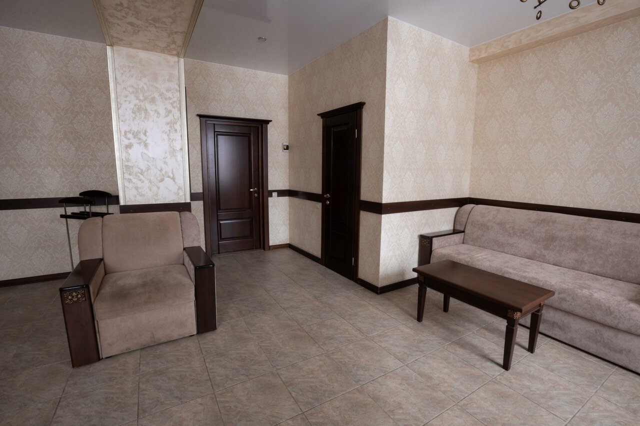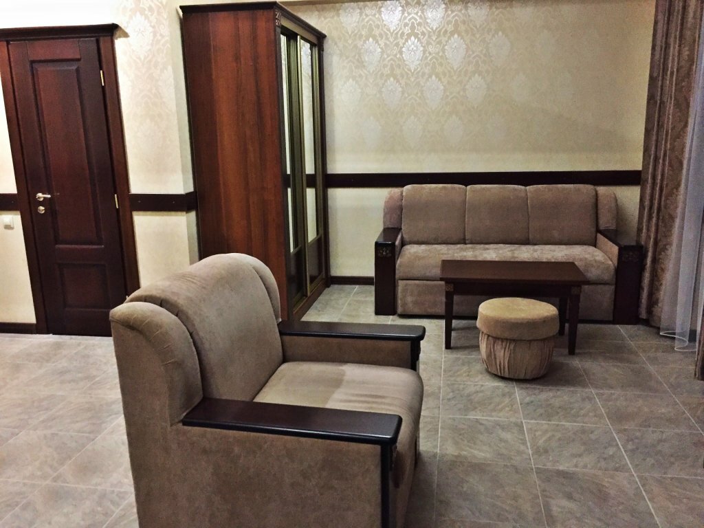 Комфортабельный номер с двуспальной кроватью,прикроватными тумбочками,шкафом-купе для одежды с вешалками,журнальный столик,мягкой мебелью (диван,кресло,пуфы),рабочий стол,телевизор ЖК, настенным зеркалом,холодильник,душевой комнатой и санузлом.