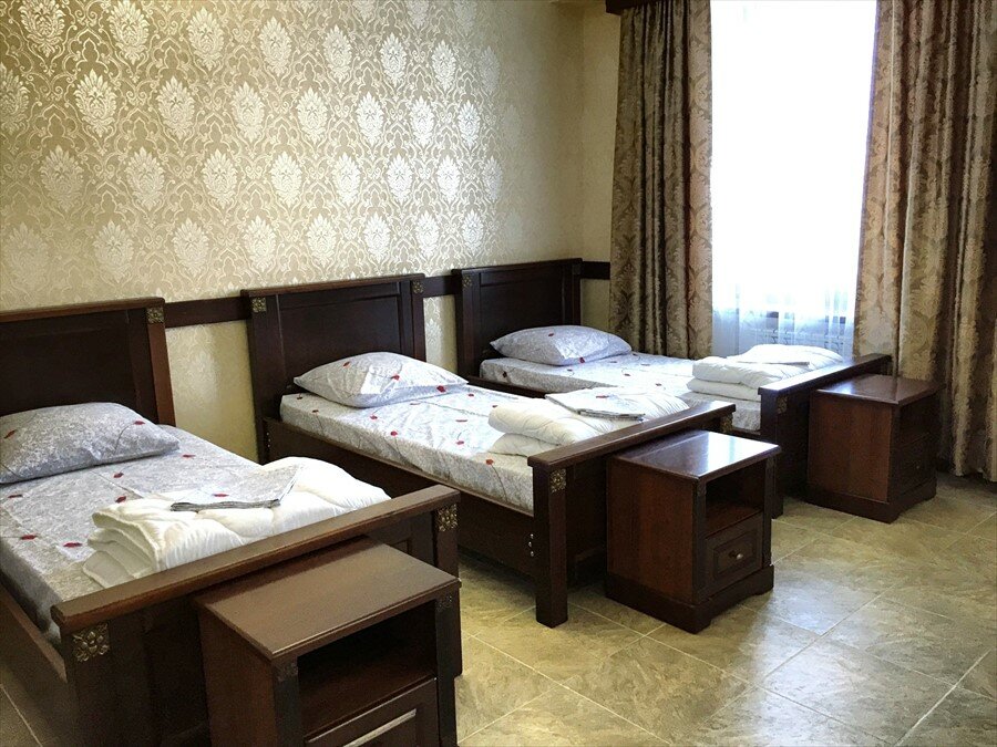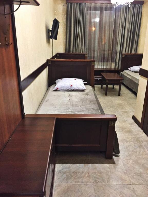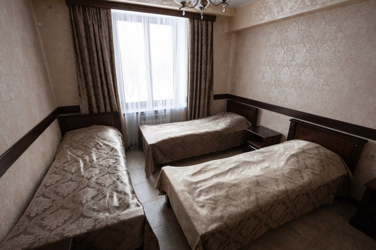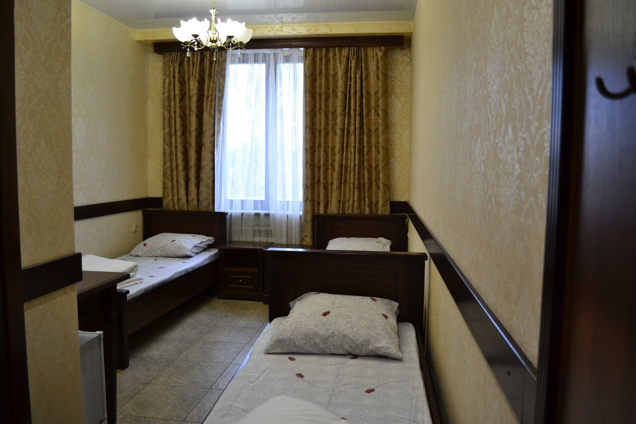 Комфортабельный номер с 3 полуторными кроватями,прикроватными тумбочками,шкафом-купе для одежды с вешалками,телевизор ЖК, холодильник,душевой комнатой и санузлом.В номере и на всей территории отеля бесплатный Wi-Fi.