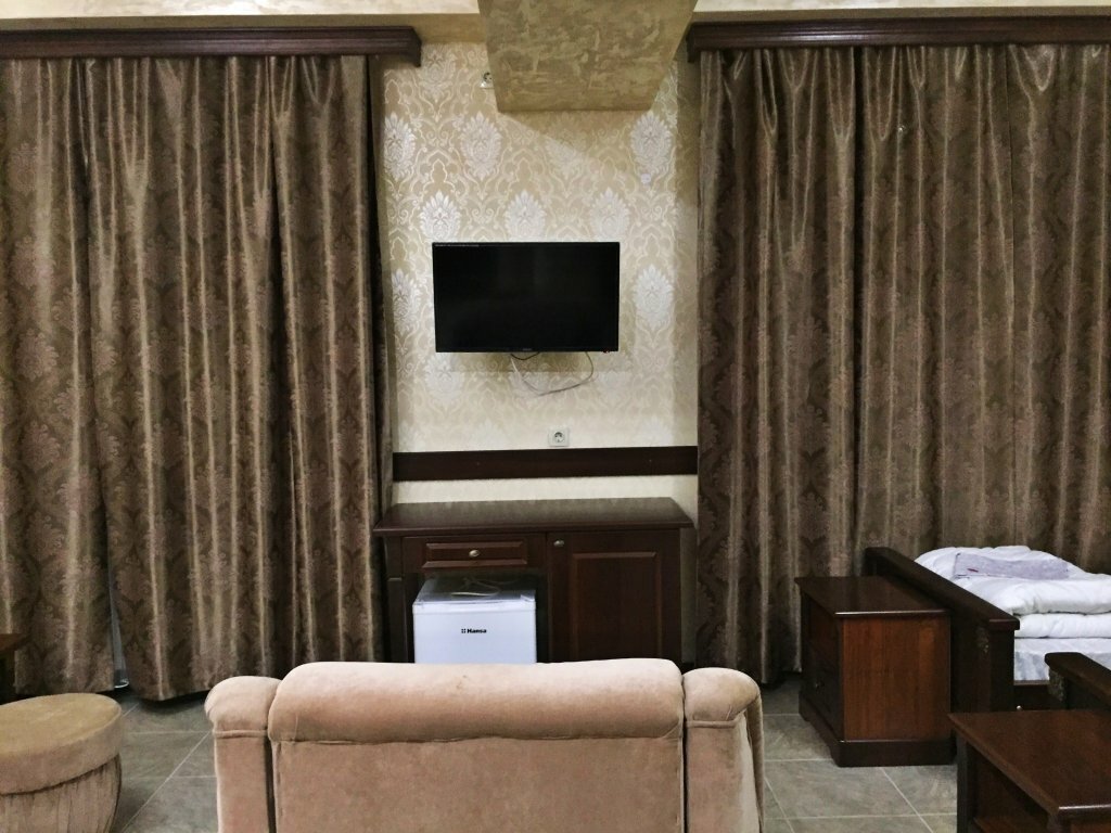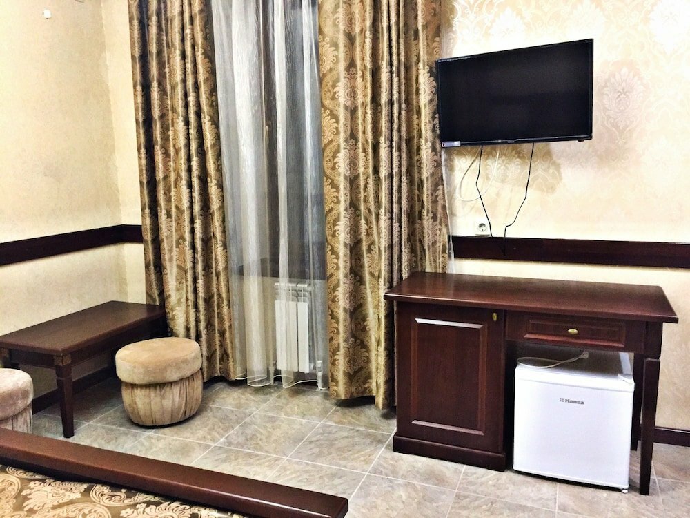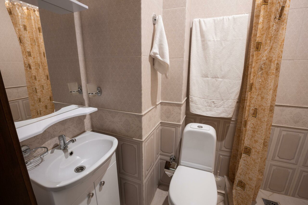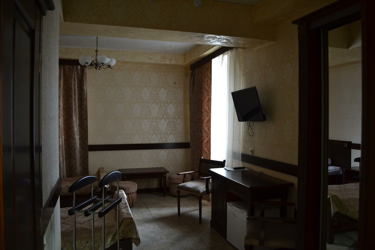 Комфортабельный номер с 3 полуторными кроватями,прикроватными тумбочками,шкафом-купе для одежды с вешалками,телевизор ЖК, холодильник,душевой комнатой и санузлом.В номере и на всей территории отеля бесплатный Wi-Fi.