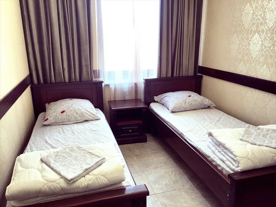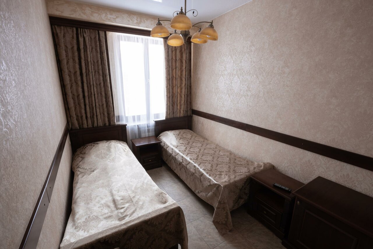 Комфортабельный номер с двумя полуторными кроватями,прикроватными тумбочками,шкафом-купе для одежны с вешалками,телевизором ЖК,холодильником,обувной полкой,душевой и санузлом.В номере и на всей территории отеля бесплатный Wi-Fi. Номера укомплектованы