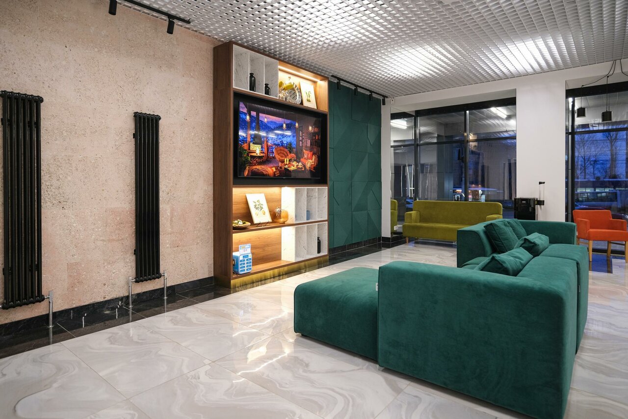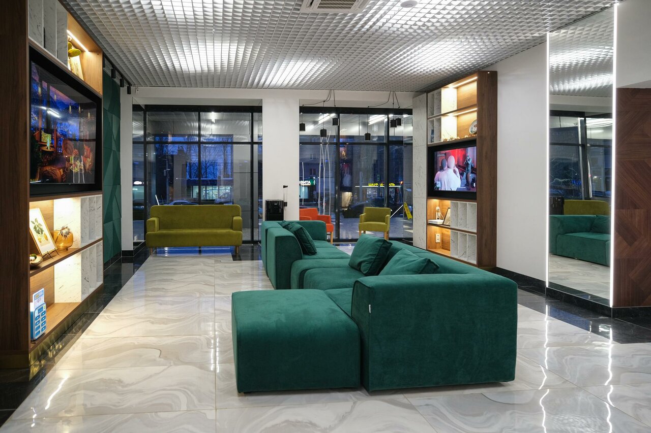 Вежливый персонал, очень много приятных бонусов при заселении. И стильный, современный дизайн номера и всего пространства отеля.