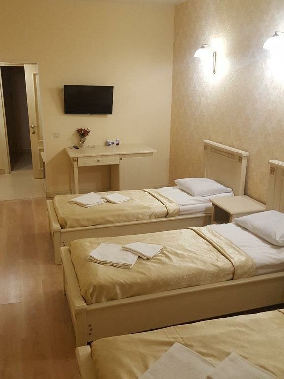 Три звёзды, в принципе, ничего так. В номере нет холодильника, тапочек. Если не повезет — пролежанный матрас. Из плюсов — вкусные завтраки, причем можно выбрать из разных вариантов