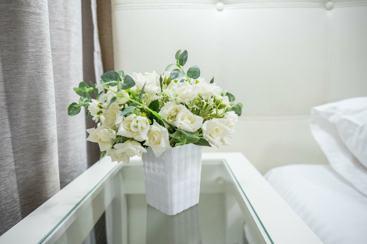 - Белоснежное постельное бельё и полотенца.