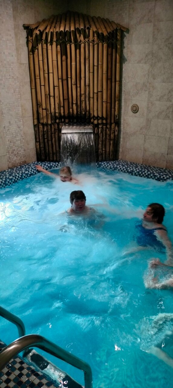 Очень понравилась.От бассейна в восторге,.большой глубокий с теплой водой.Хамам и турецкая баня все на уровне.Чистота порядок,спасибо сотрудникам.Были в большой сауне,массажное кресло все удовольствия дополняют,для двоих конечно площадь большая,а так все супер.