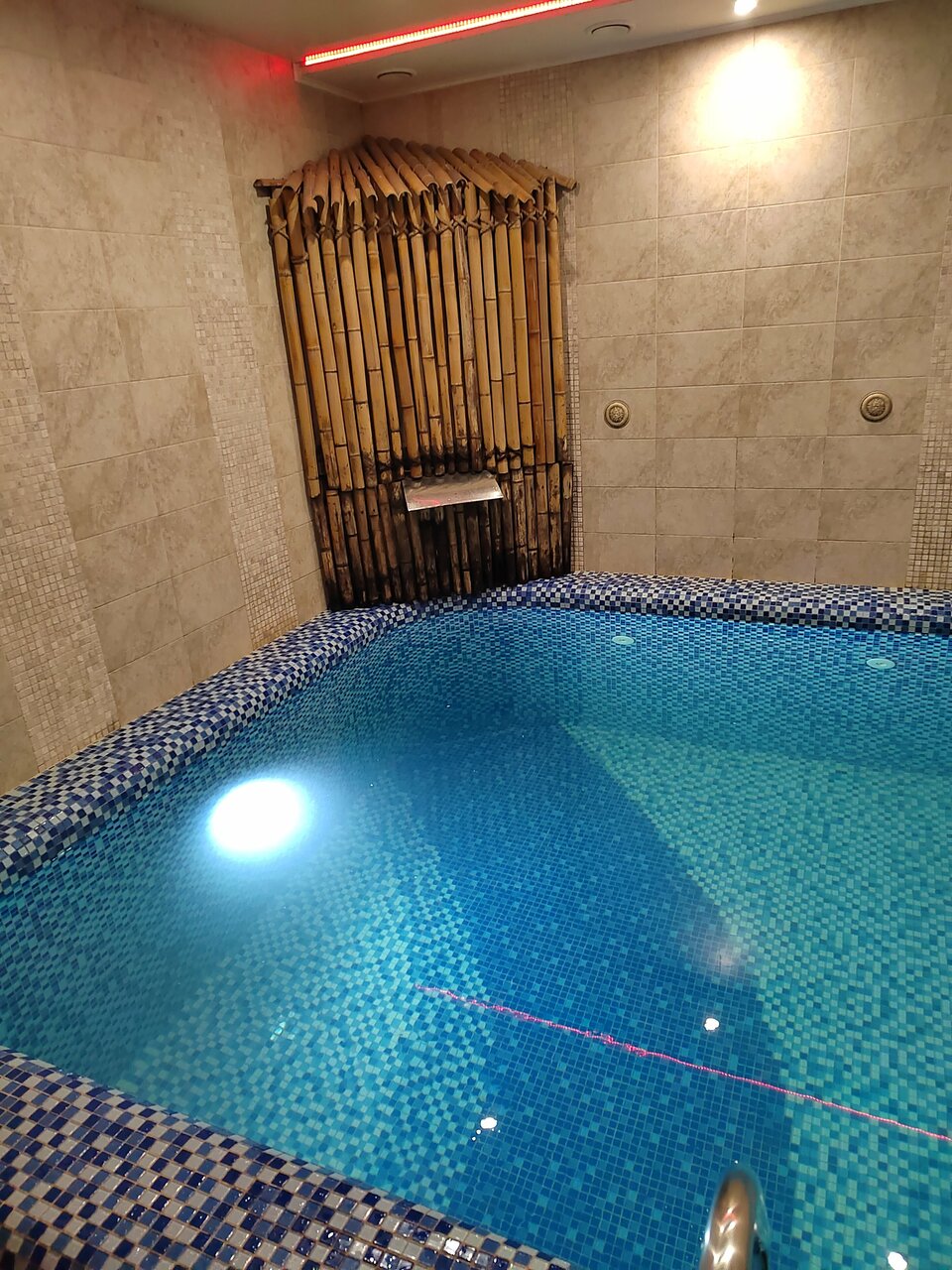 Отличная банька, чистенькая, бассейн тёплый, бесплатно массажное кресло.
