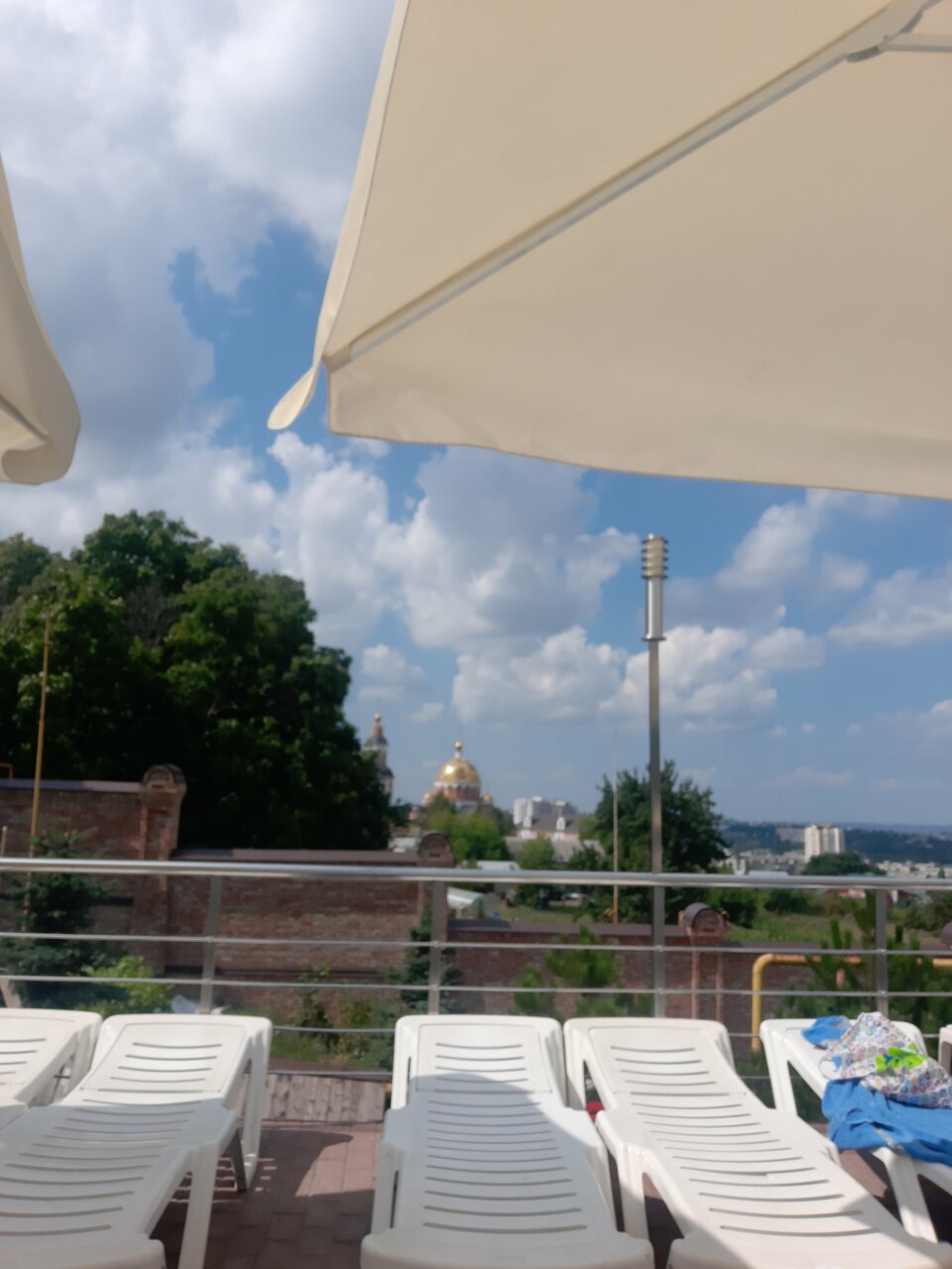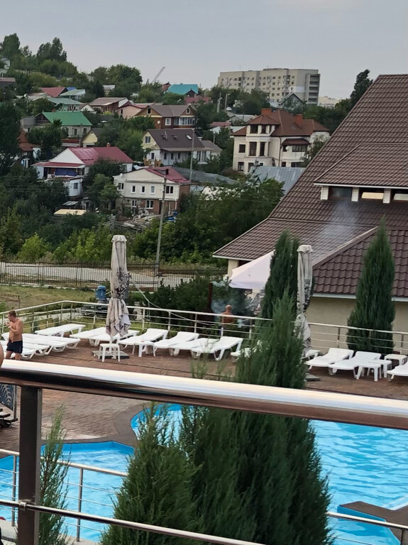 - Удобные шезлонги.; Близкое расположение к городу.; Чистота в помещениях.; Красивый вид (на город, горы, монастырь).; Вежливый и хороший обслуживающий персонал.