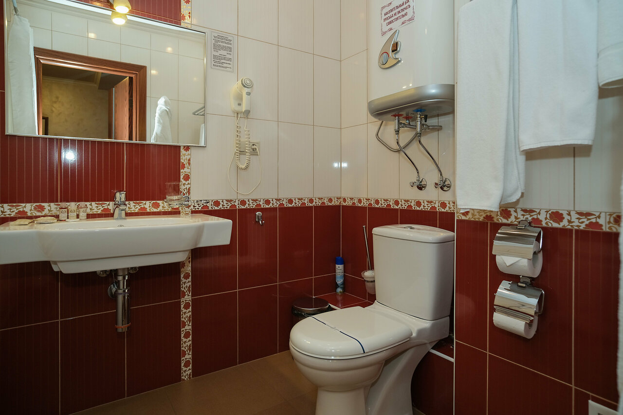 Оставалась на сутки, в номере в целом не плохо, но очень шумная система слива воды (утром не возможно спать). В номере где оставалась был неисправен котел, греющий воду, починили, но это вызвало неудобства. Завтрак обычный, но достаточно разнообразный.