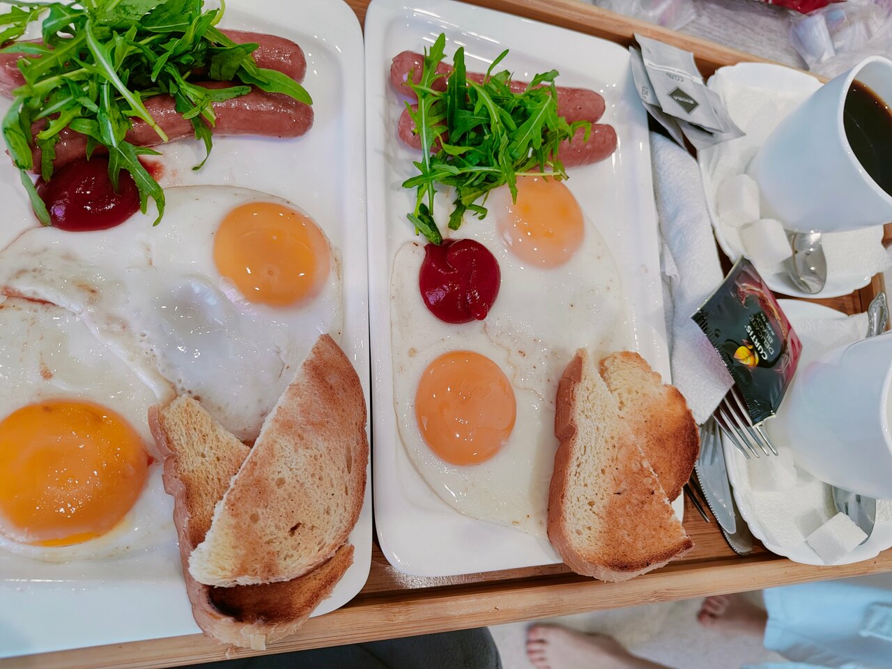 Номер чистый, уютный. Завтрак доставили в номер. Красивая сервировка. Персонал вежливый, общительный. Атмосфера приятная.