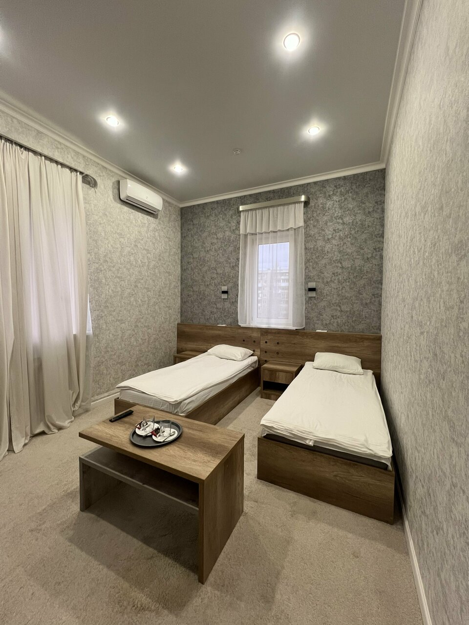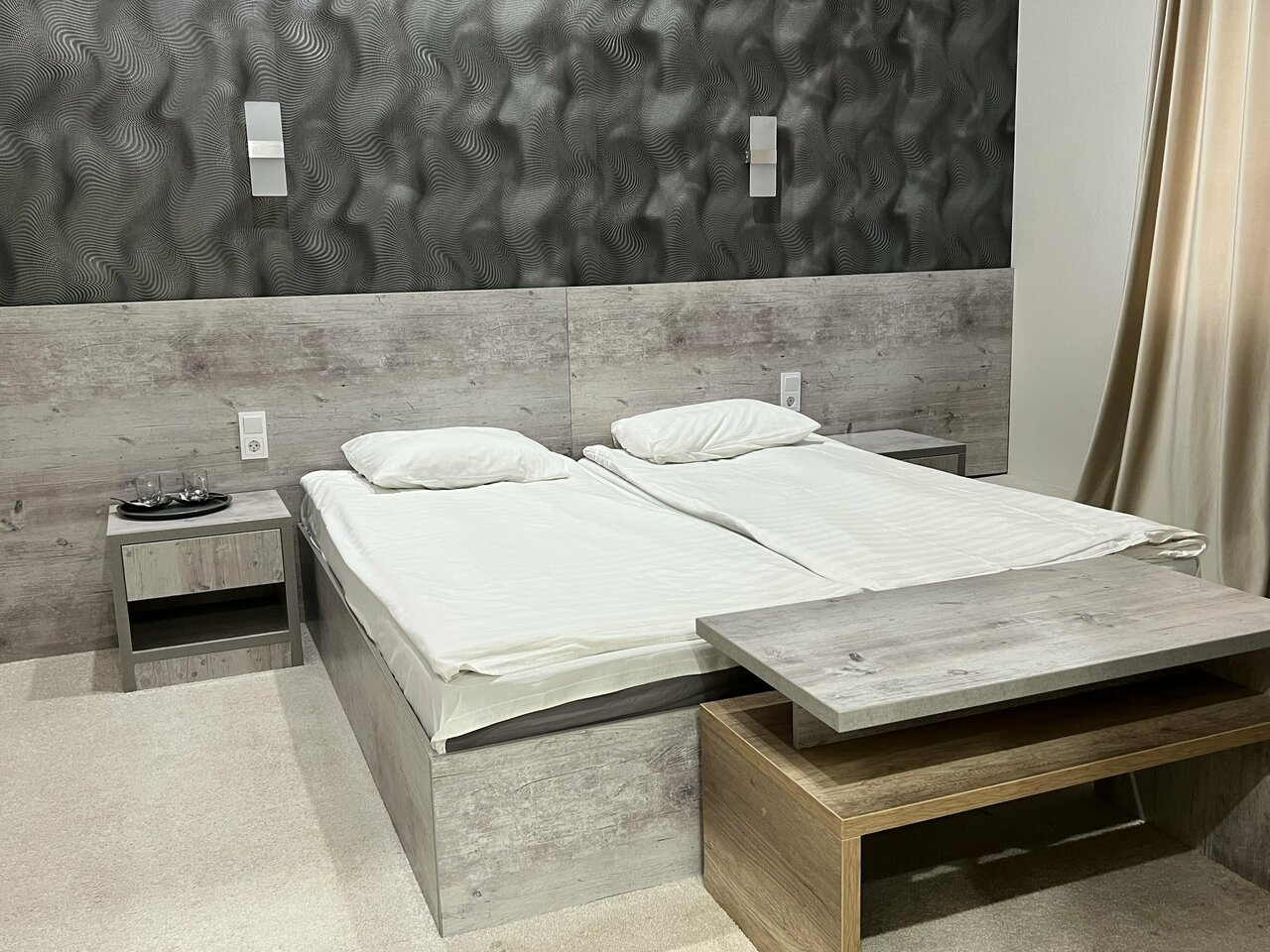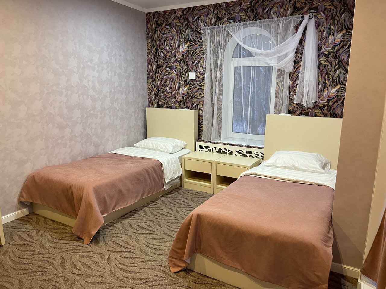 Комфортабельный номер комфорт с удобной мебелью и собственным санузлом.Есть вся необходимая мебель для комфортного проживания.В номере:две раздельные кровати , прикроватная тумба, журнальный столик, вешалка для одежды, санузел с душевой кабино...