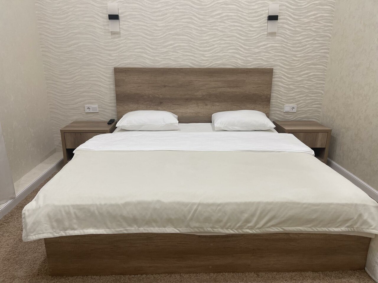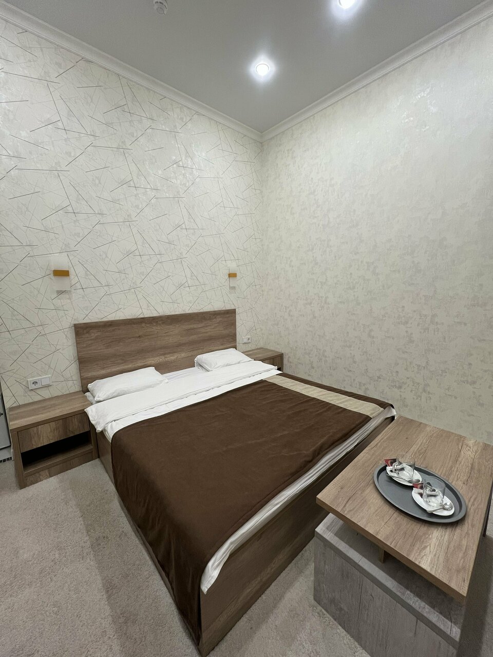 Номер Стандарт с удобной мебелью и собственной ванной комнатой.Есть вся необходимая мебель для комфортного проживания.В номере: двуспальная кровать, прикроватная тумба, журнальный столик, вешалка для одежды, санузел с душевой кабиной, телевизо...