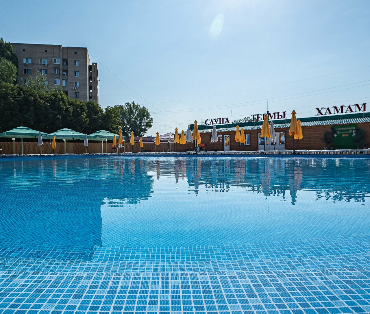 Была только в бассейне. Просторный, много лежаков, достаточно столиков и солнцезащитных зонтов. Есть лягушатник для маленьких с очень теплотой водой. Душевые и раздевалки на территории не большие, но толчии нет. В кафе цены приемлемые, готовят вкусно. Из минусов: маленькая парковка, громкая музыка.