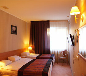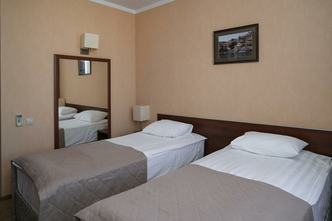 - Две односпальные кровати- Сплит-система- Багажная полка- Халат- Фен- Шкаф- Набор гигиены-