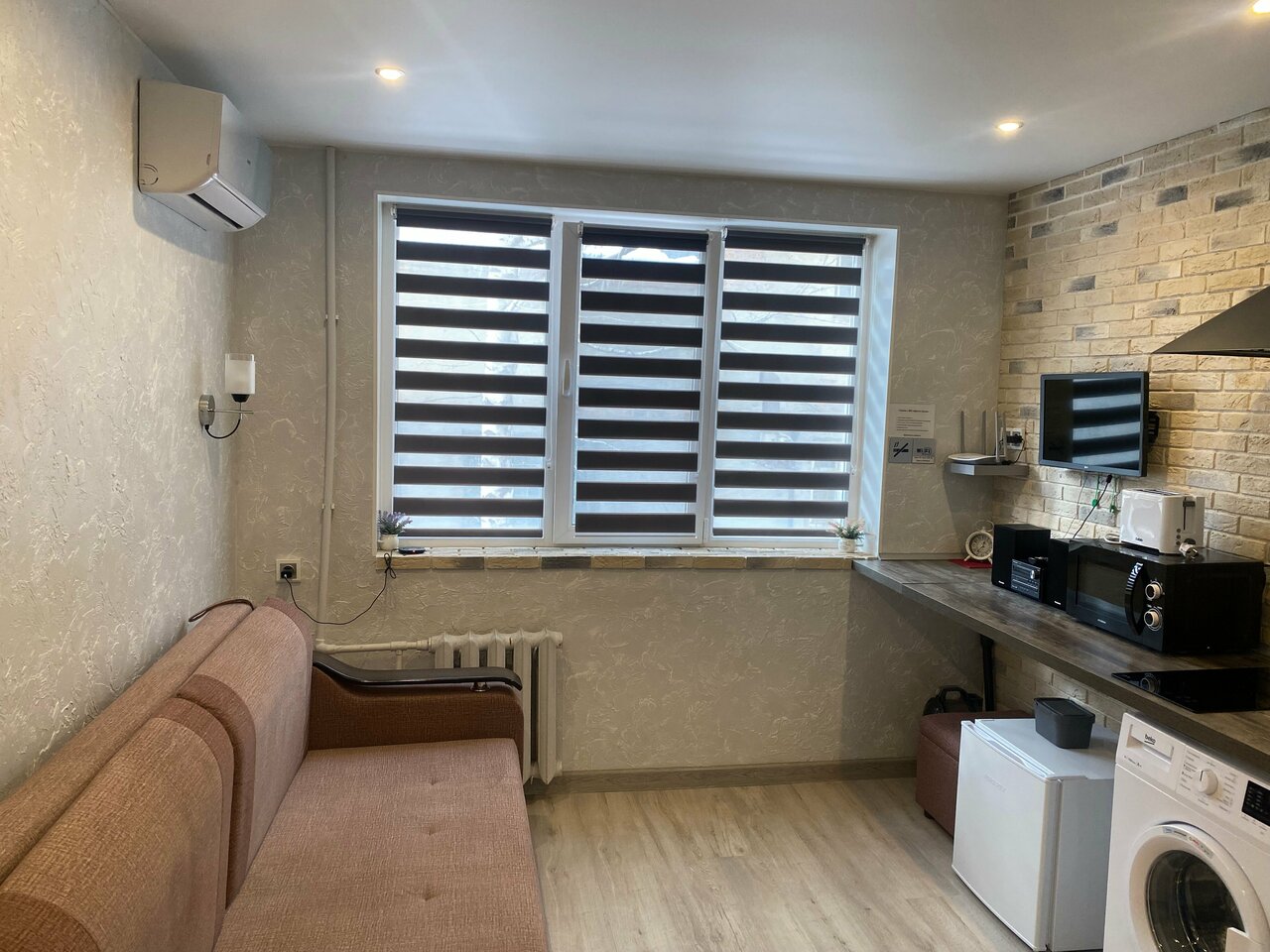 Студия в ЖК Краски Жизни — апартотель в Саратове (Ленинский район, ул. Тверская, 53), предлагающий недорогие номера с кухонными уголками, кондиционерами и Wi-Fi. Гостиница работает ежедневно с 08:00 до 23:00, заезд с 14:00, выезд до 12:00.