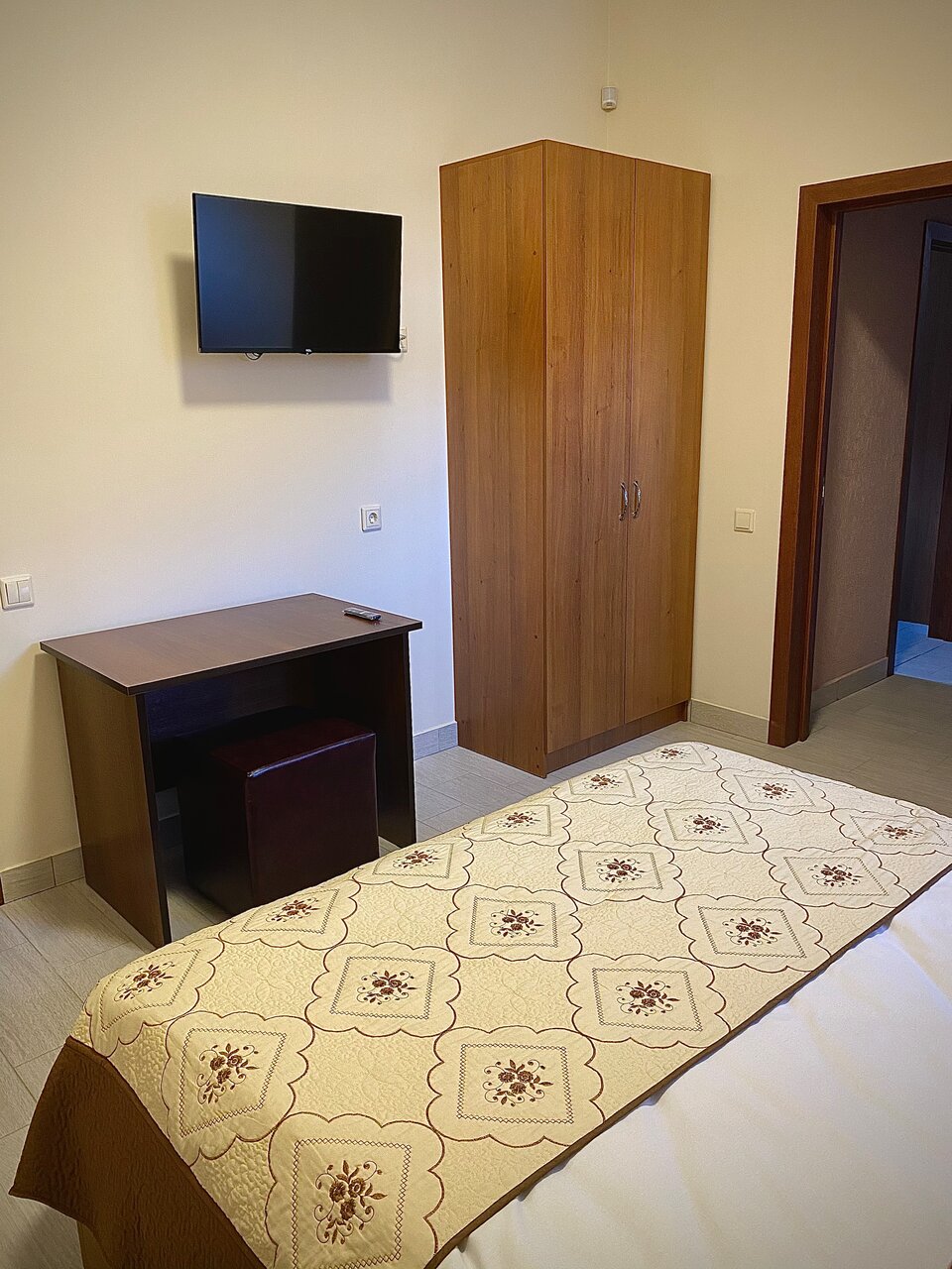 Если у вас есть другой вариант, то о танавливаться тут не стоит.останавливались с семьёй тут на два дня.мы были в этом отели единственными постояльцами, позже поняли почему.ни одноразовых средств гигиены нет за то есть вонючие мыло.в номере не убиралась,завтрака нет.был дождь, мы мокрые забежал с улицы и тут нас дама на ресепшене обрела матом ,видимо те ли мы ей наследли,в прямом смысле матом!это было крайне не приятно что за наши же деньги на нас орут.очень пожалели ,что остановились тут.не советую.