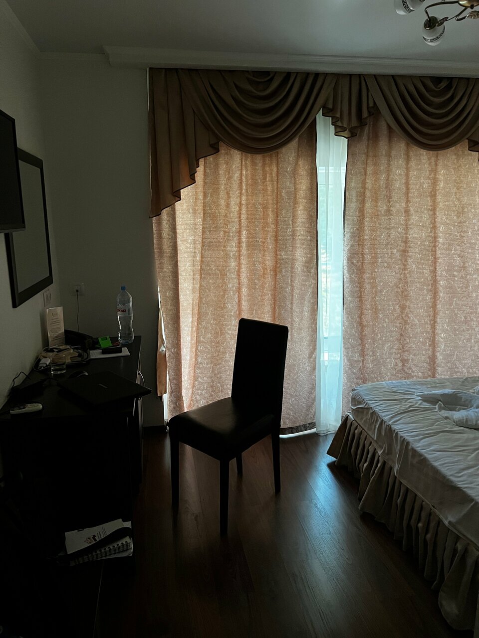 Абсолютно никакой шумоизоляции. Соседи в соседнем номере как будто разговаривают рядом с вами. Слышно абсолютно все. Готовят не очень вкусно. Хотя стоит не дёшево.