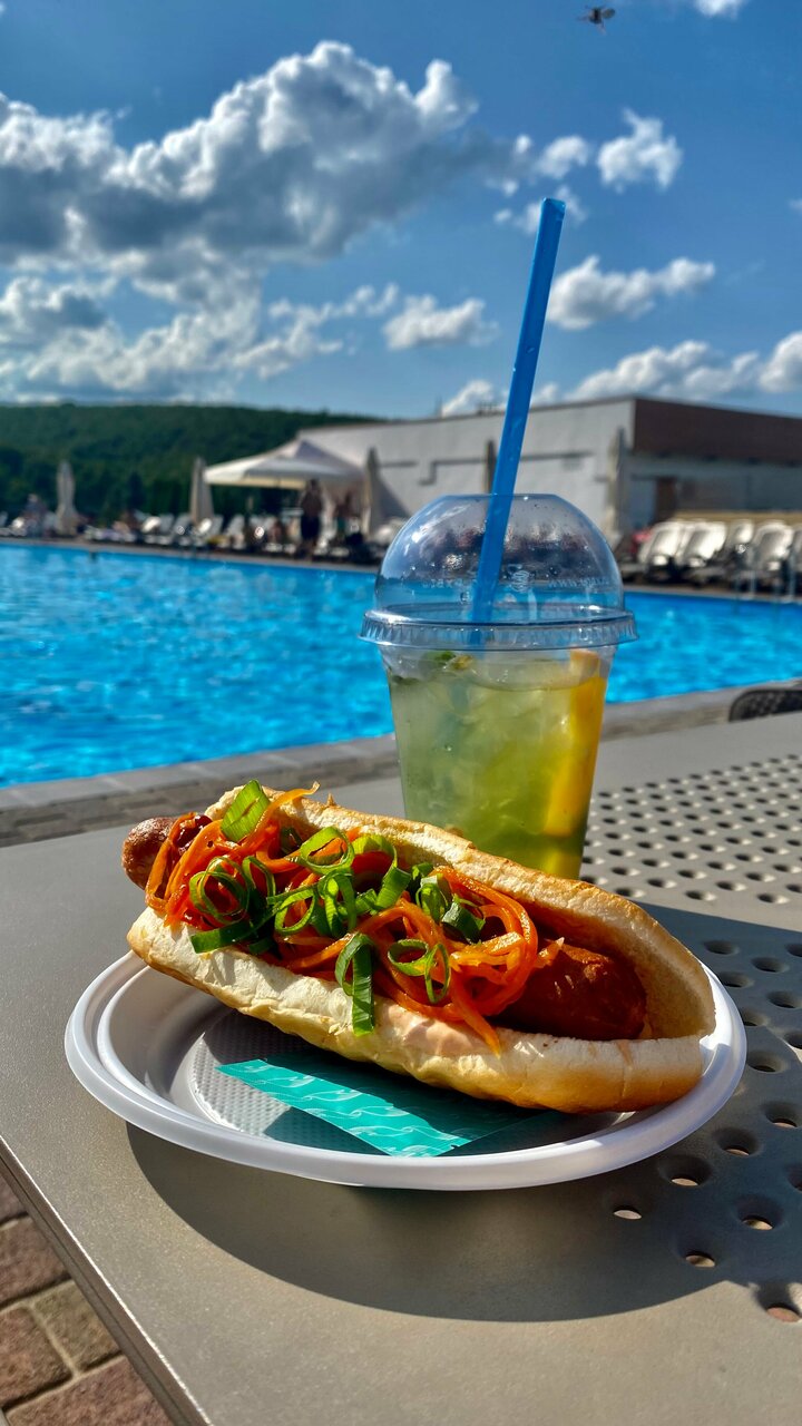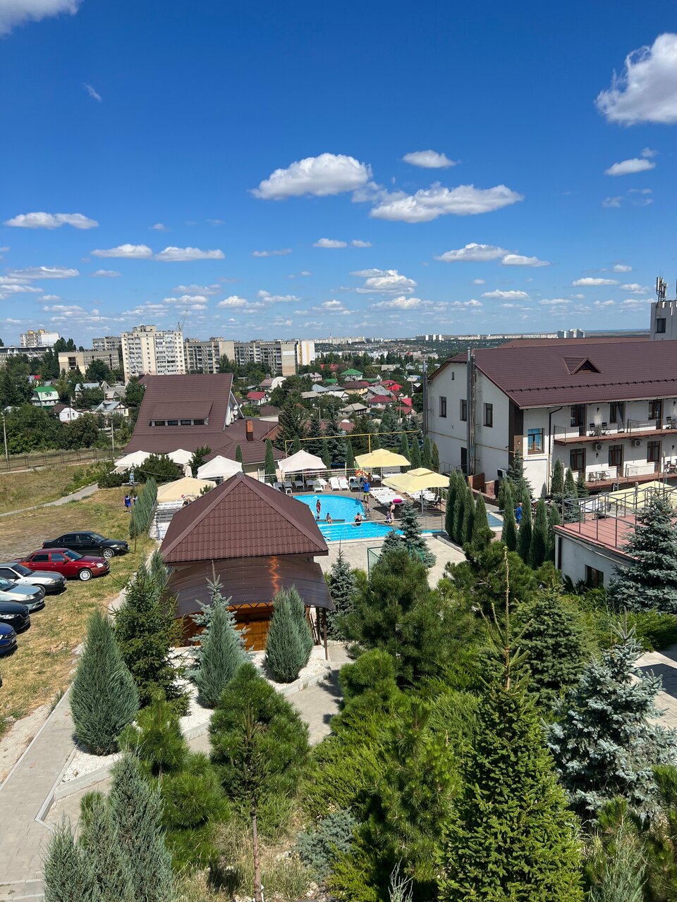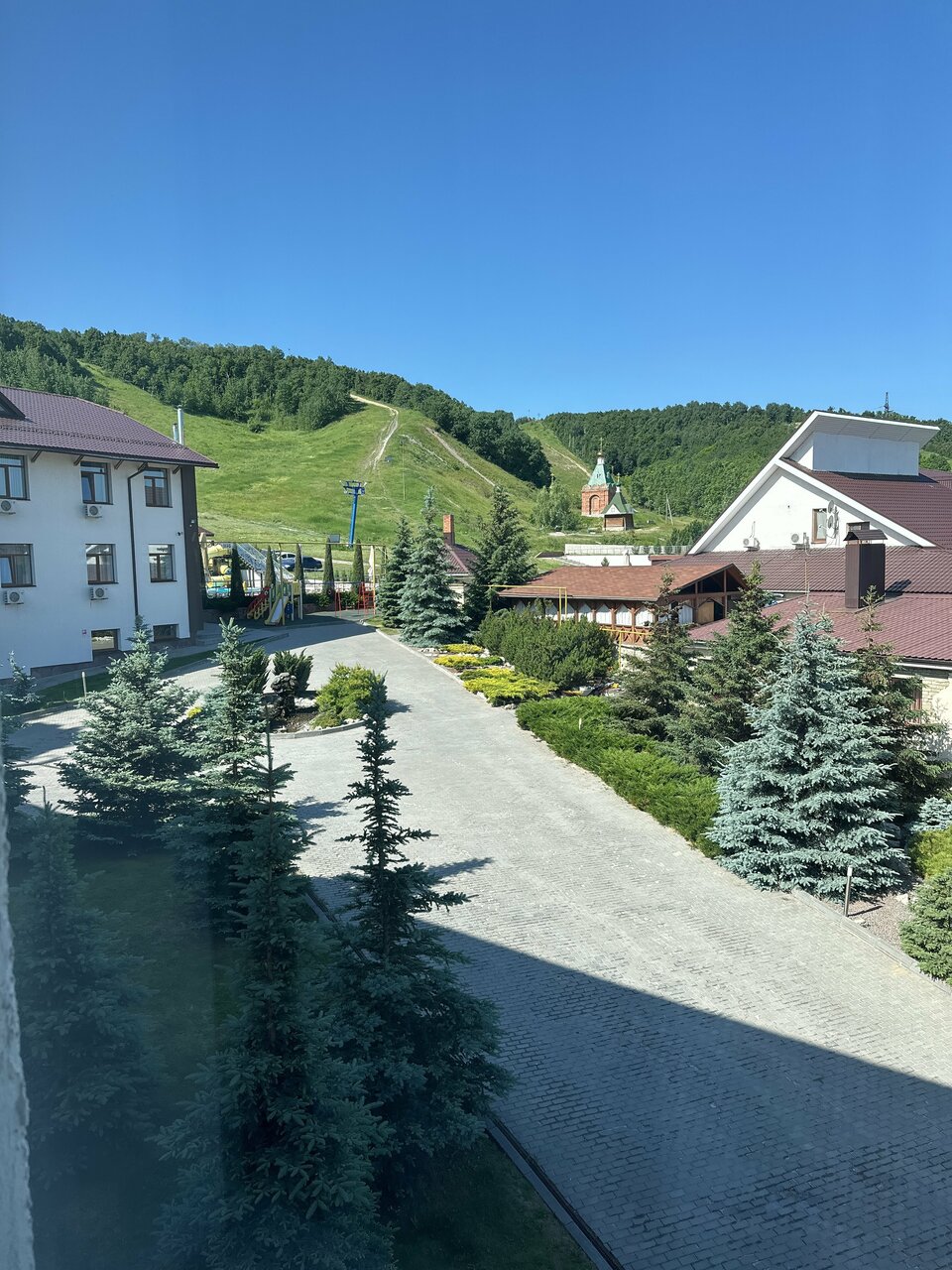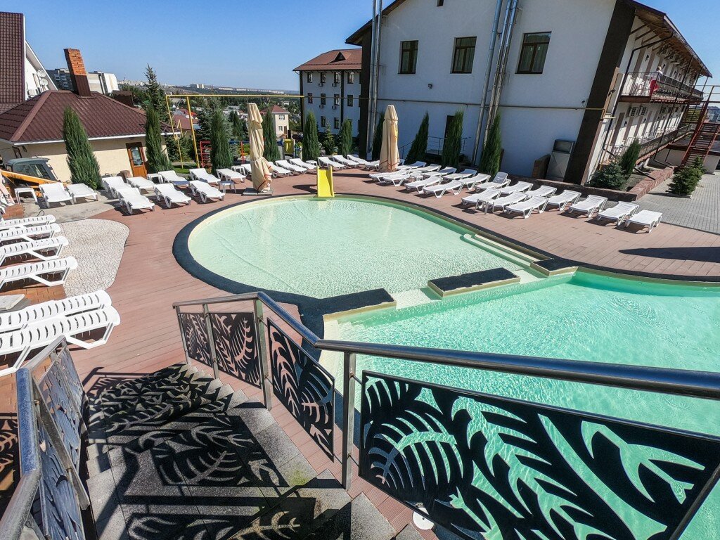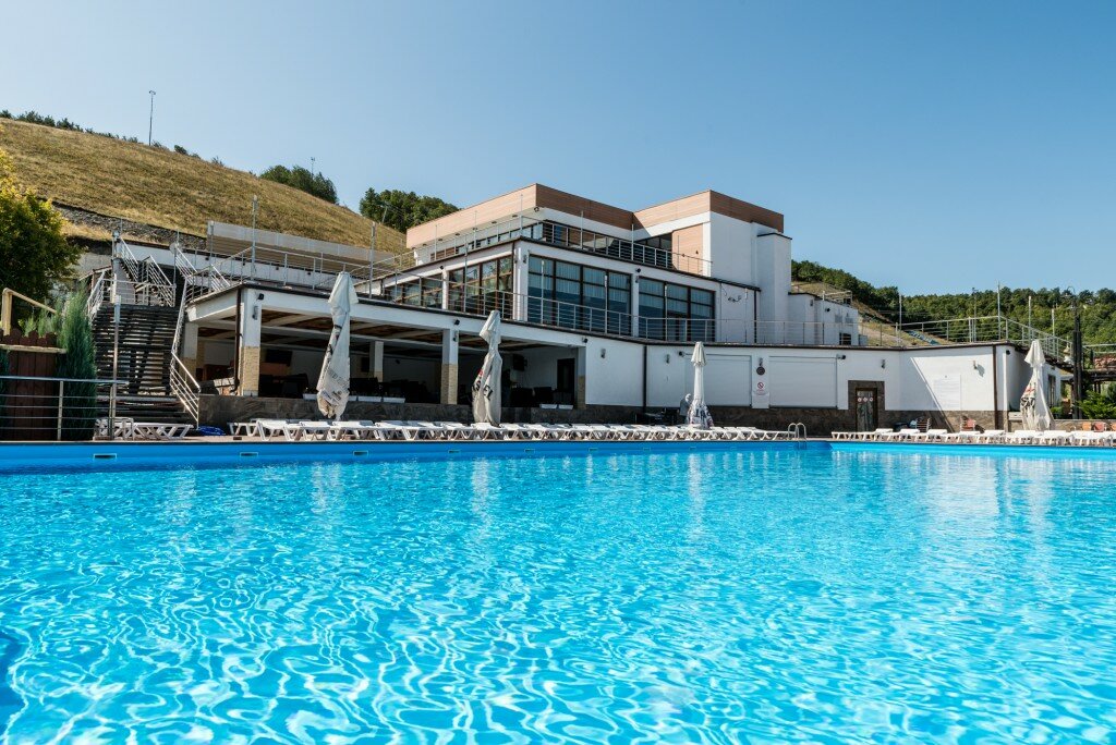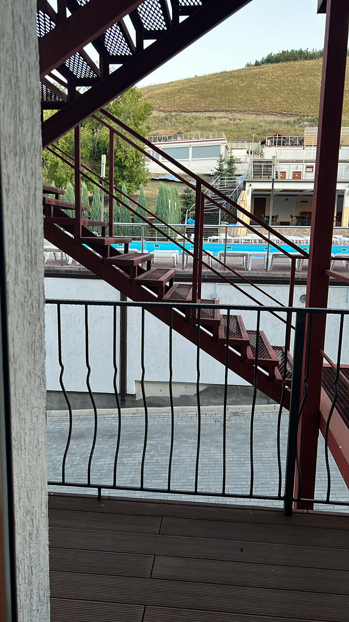 Приходил в этот комплекс в надежде увидеть красивый пейзаж попивая коктейль сидя в бассейне. Пейзаж оказался так себе. Вокруг идёт стройка. Склады тротуарной плитки, трактора и прочие строительные принадлежности, хорошо просматриваются из бассейна. Взглянув выше мы видим зелёные холмы в пастбищами коров пасущимися рядом. Из-за близости леса, в бассейне плавает множество мошек и мух. Персонал пытается справляться с этим, вылавливая живность сочком. Хочу отметить доброжелательность персонала. Ну а в завершении всего пейзажа — это банер на стене рядом с бассейном. На котором изображено какое-то райское место, типа Мальдивы или Бали. Подобные банеры вышли из моды наверно лет как 20 назад. Сам бассейн небольшой. Из минусов ещё хочется отметить тот факт, что уехать от туда можно только на такси или собственном транспорте.