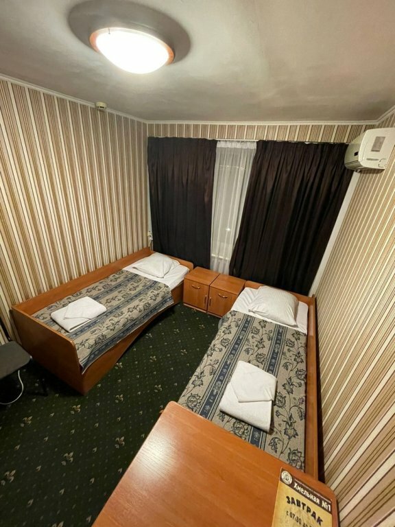 Номер ‘стандарт’ на твердую ‘3’ На два человека 2 полотенца( маленькое и большое)- должно быть 4. Отсутствуют тапочки,которые заявлены на сайте. В зановесках дыры от сигарет,на люстре паутина,на подоконнике пыль. Ковровое покрытие в номере,наверное,не мылось никогда. Босыми ногами не наступить!!! Завтрак хороший,персонал отзывчивый.