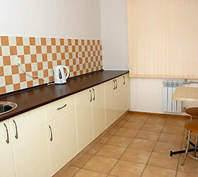 - Полноценная кухня (микроволновка, чайник, плита, холодильник, посуда).