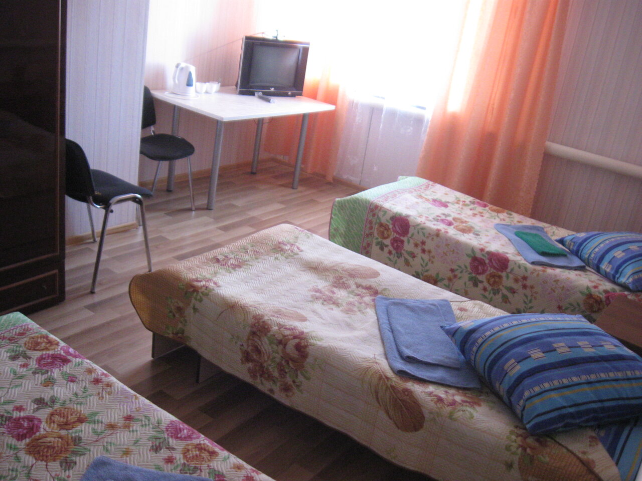 Обман клиентов! Вместо забронированного трехместного номера по цене 2100 руб. был предоставлен двухместный номер с доплатой за раскладушку по цене 2600 руб. Чек не предоставили, деньги были переведены по номеру телефона на имя Майа Георгиевна Ч. Отсутствовал кондиционер и даже мыло, которые были заявлены в описании номера.В номере пыль, полотенца с дурным запахом , отклееные обои. Не рекомендую данную гостиницу!