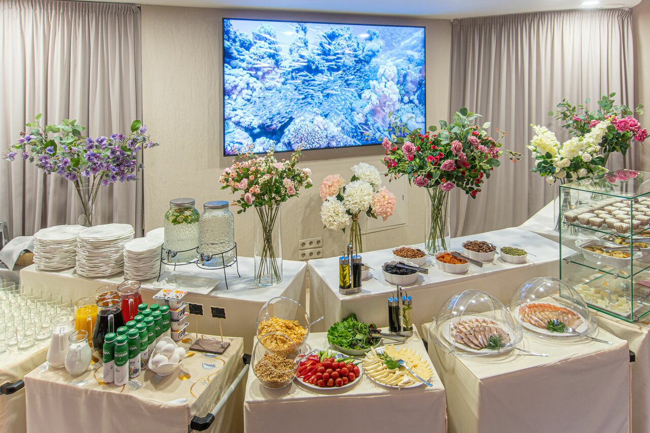 - Вкусные завтраки (шведский стол, разнообразие блюд).