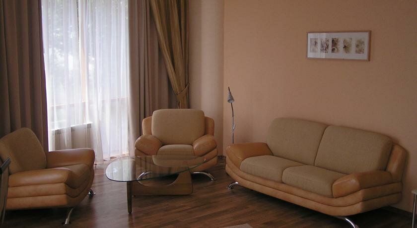 - Удобное расположение (близко к набережной, паркам, центру).; Смена белья и полотенец каждые 2 дня.; Хорошие, чистые и просторные номера.; Тихая и уютная атмосфера.; Внутренний дворик для прогулок.