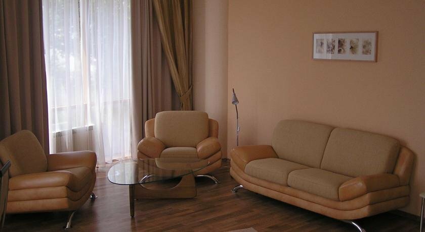 Немножко ретроградная (чуть уставшая и устаревшая), но все таки очень неплохая гостиница. Паркетные полы в номерах, пухлые необъятные кресла и отсутствие света у изголовья кровати… Но постель и сама кровать были очень хороши, а завтрак )по моему вкусу) был просто великолепен: советую не пропустить божественную пиццу, которую пекут здесь и ассортименту ягод и фруктов позавидует самый дорогой отель. Один совет: следите, чтобы вам отдели паспорт после регистрации и заселения. Легко может остаться в ксероксе и скажут, что нету.