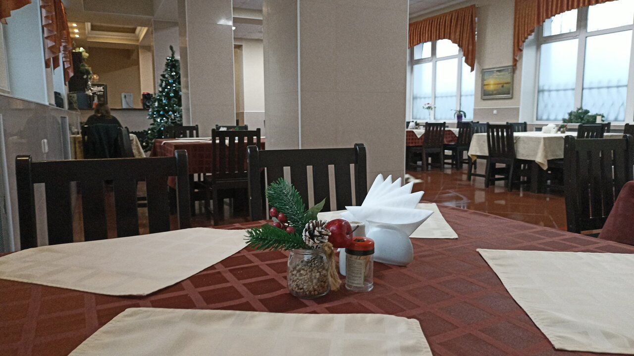 Кафе в гостинице ужас. Лапша в супе переварилась до состояния раскисания, судак в кляре уровень столовой, Куриная печень тушеная в сливках была вся рыхлая и отдавала уксусом. На претензию о том, что печень некачественная- было заявлено, что она такой должна быть