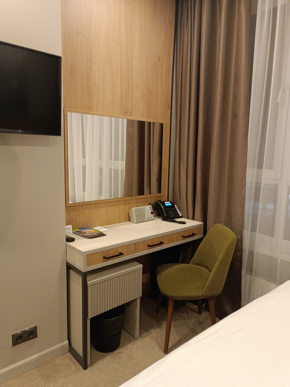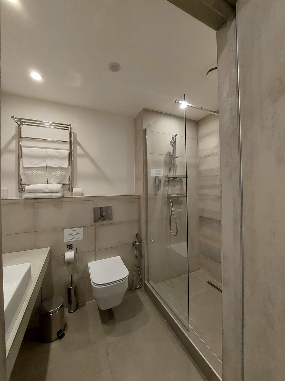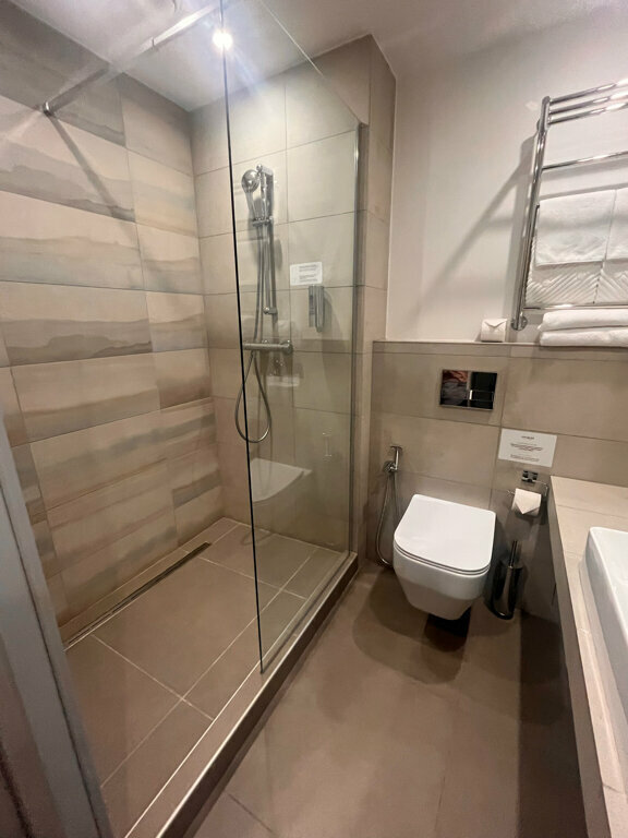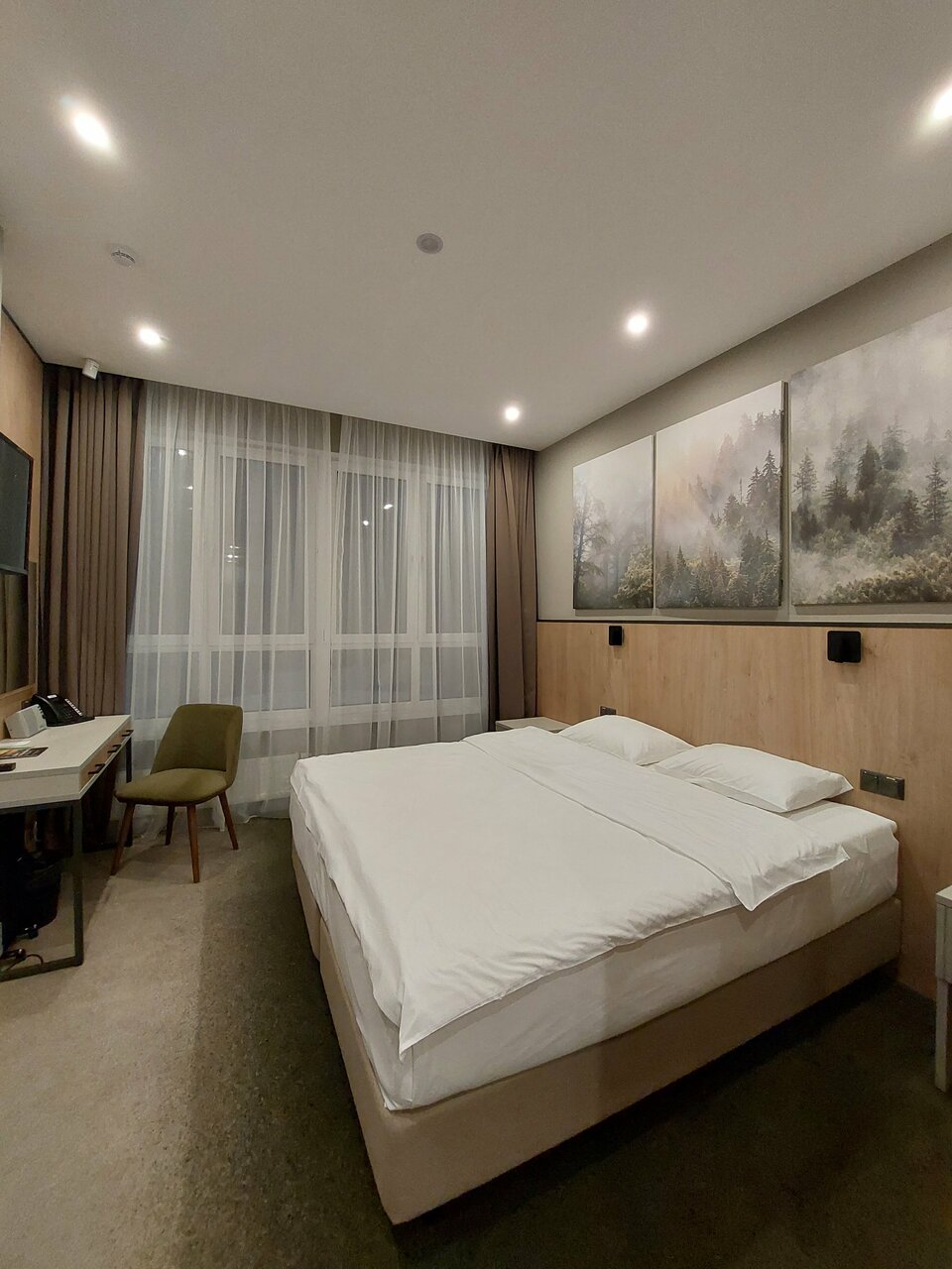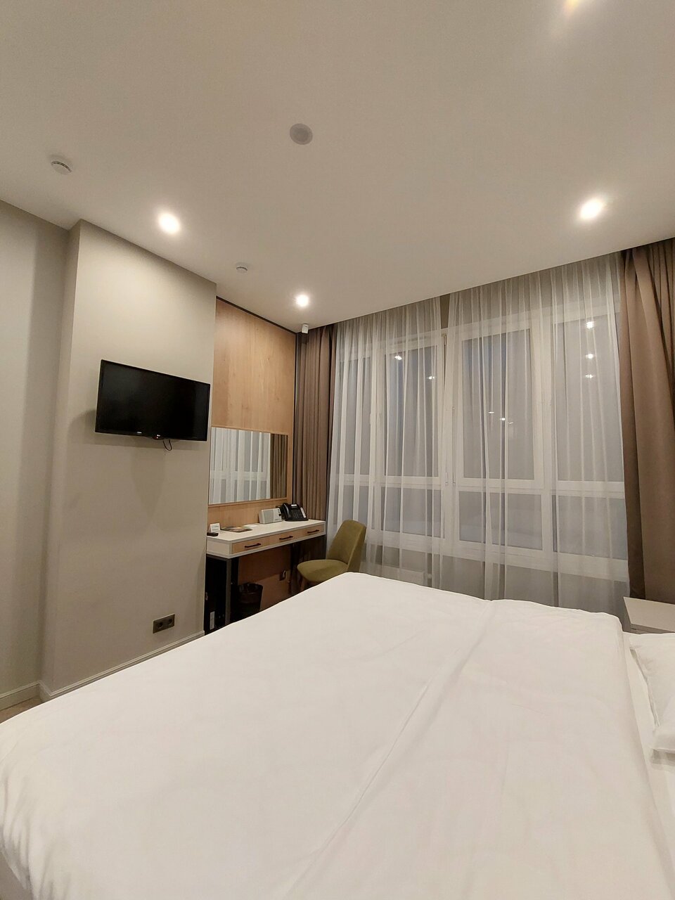 Очень понравилась гостиница,приветливый персонал,вкусная еда в ресторане,на завтраке шведский стол.Единственный минус нет халата и тапочек в номере,их можно взять на ресепшене,об этом сразу не предупреждают при заселении,узнали об этом только в номере,соответственно пришлось ещё раз спускаться