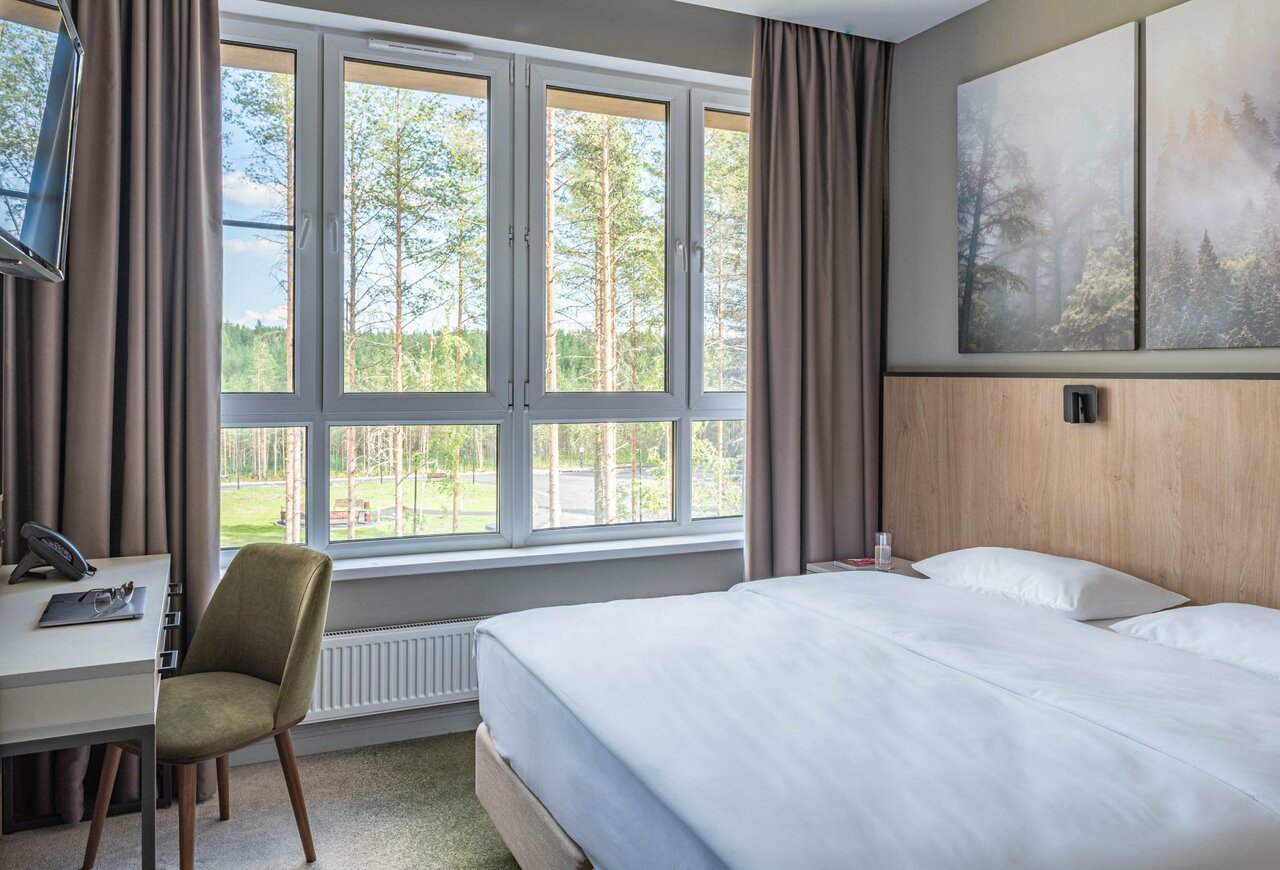 Красивый, уютный, новый отель. Вкусный завтрак, не так много блюд, но есть все, что нужно. Изолированная территория. Рядом пляж с детской площадкой. Номера небольшие, для транзита при поездке с детьми на Север из СПб самое то!