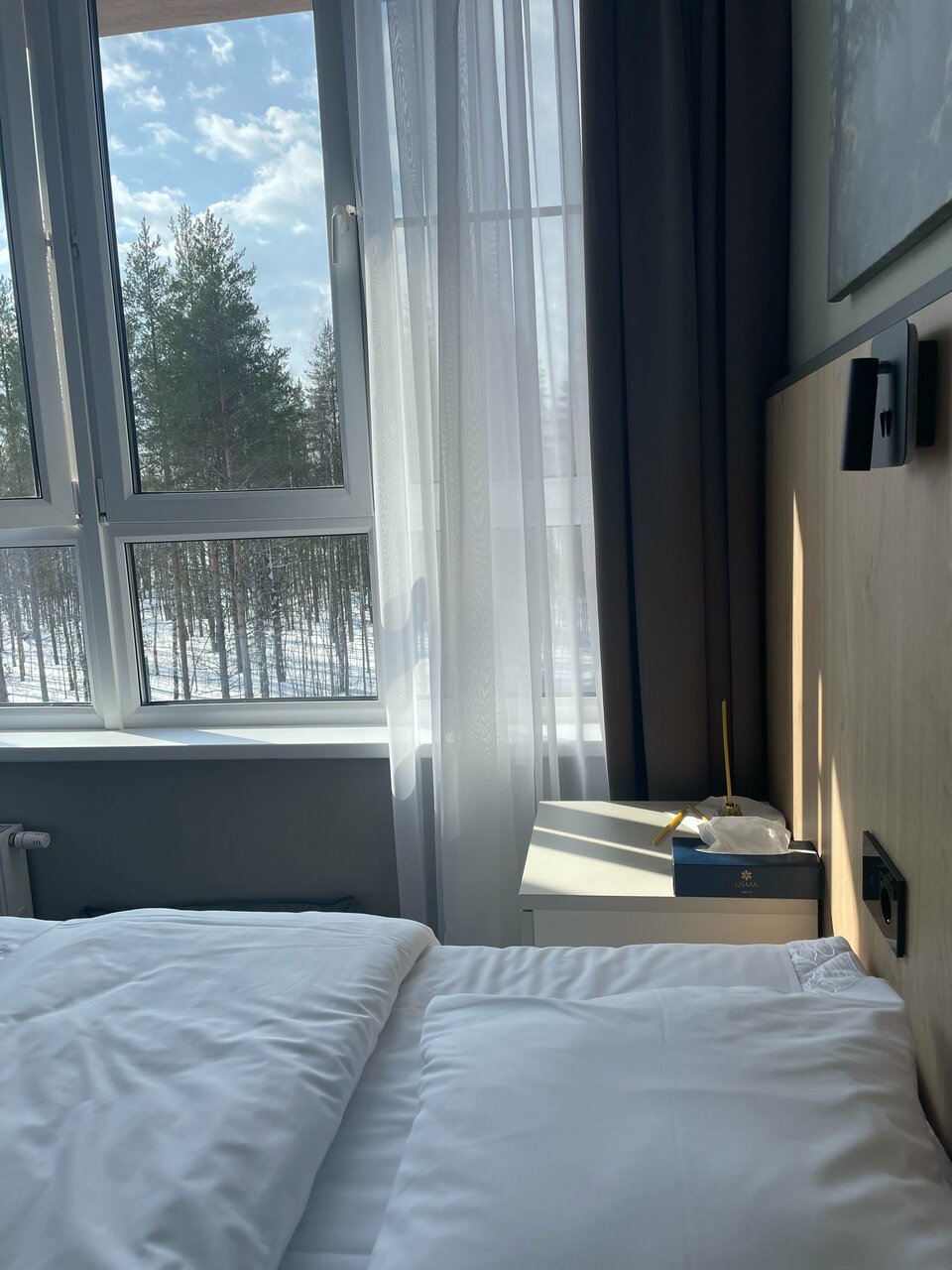 Лучший отель на пути Санкт-Петербург — Мурманск Идеальные номера, сытный и разнообразный завтрак (шведский стол), на территории много зелени, в ресторане вкусная еда с ‘северным’ акцентом. Кровати очень удобные, вся мебель комфортная, на этажах кулеры. Подходит как для ночёвки в пути, так и для самостоятельного отдыха. Обязательно приедем еще.