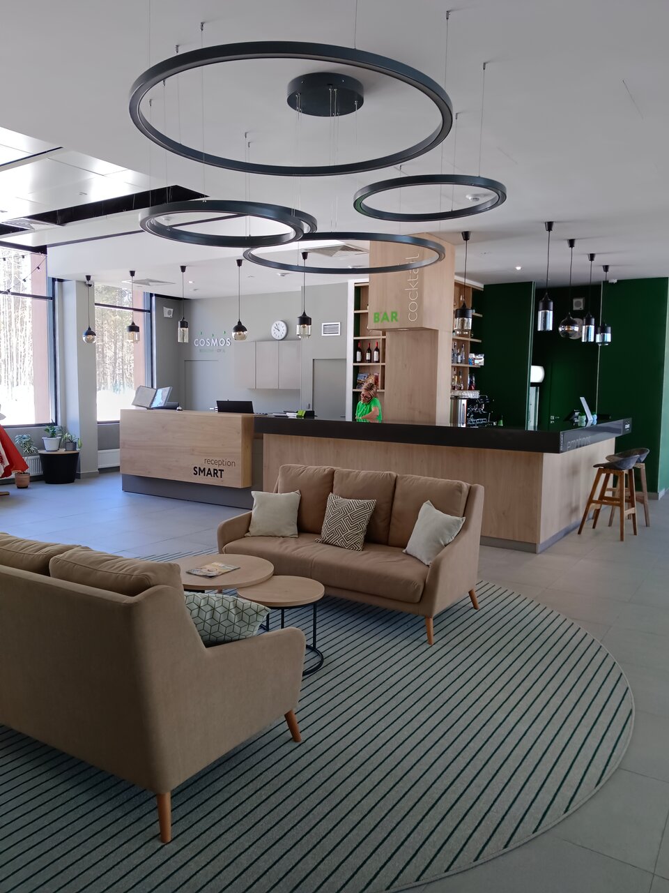 Территория отеля 5/5 Номера 5/5 Сервис 5/5 Завтрак 3/5 Большая бесплатная парковка! Очень люблю сеть космос, пока не один отель не разочаровал, но этот точно самый красивый и современный! Хотелось бы остаться на подольше, чтобы насладиться территорией!