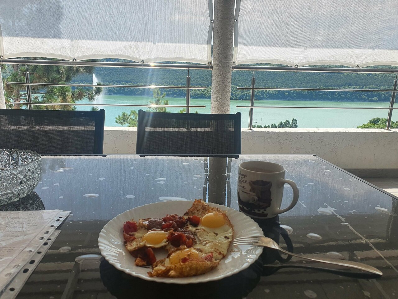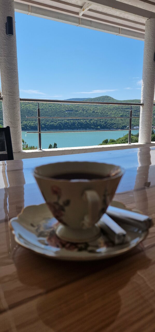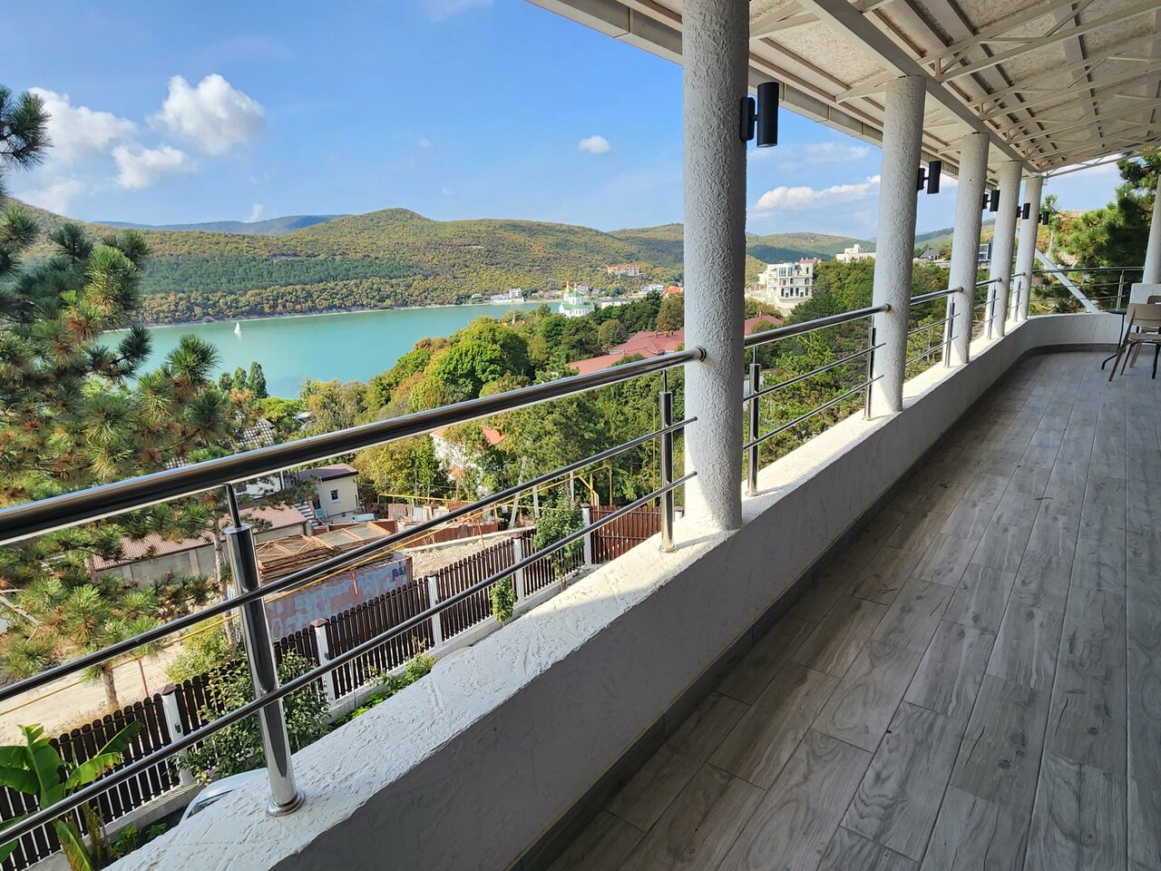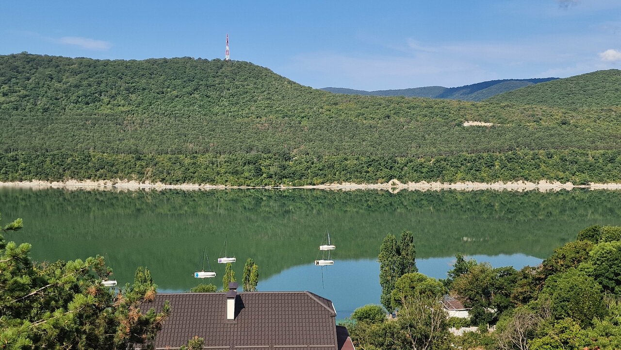 Отличное место! С нереальным панорамным видом на озеро Абрау. Свежий горный воздух, сосны прям заглядывают в окошко, за забором лаванда и фруктовые деревья. Не многолюдно. Отдыхаешь здесь и душой и телом.