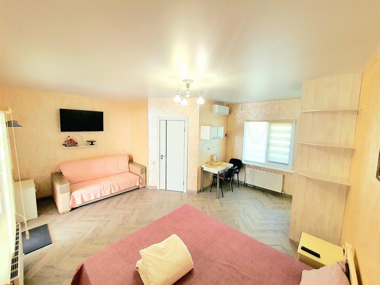 Хороший номер, светлый, чистый, большая ванная комната, кухня. Удобный диван и кровать.