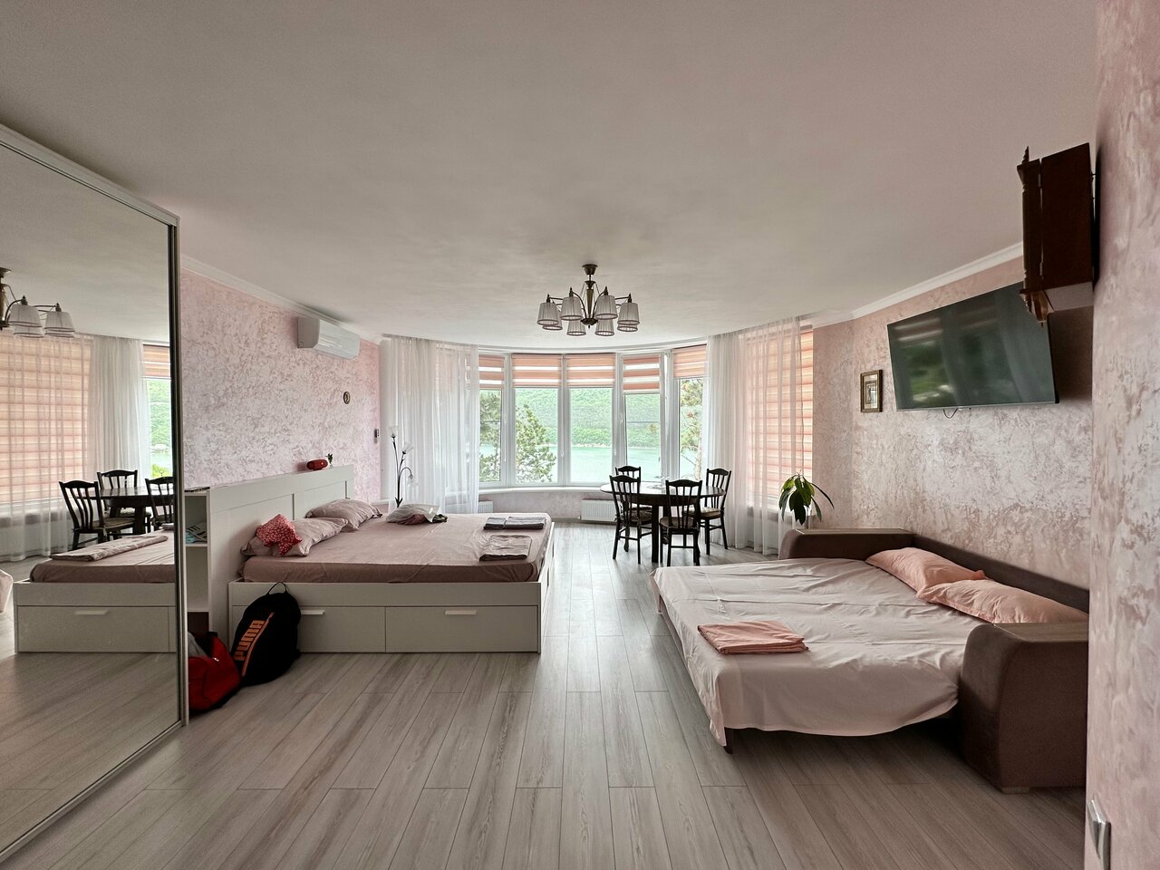 Супер квартира) все как в описании, вид шикарный, хороший хозяин, отдыхали в ноябре, разрешили с собачкой, что очень важно для нас!