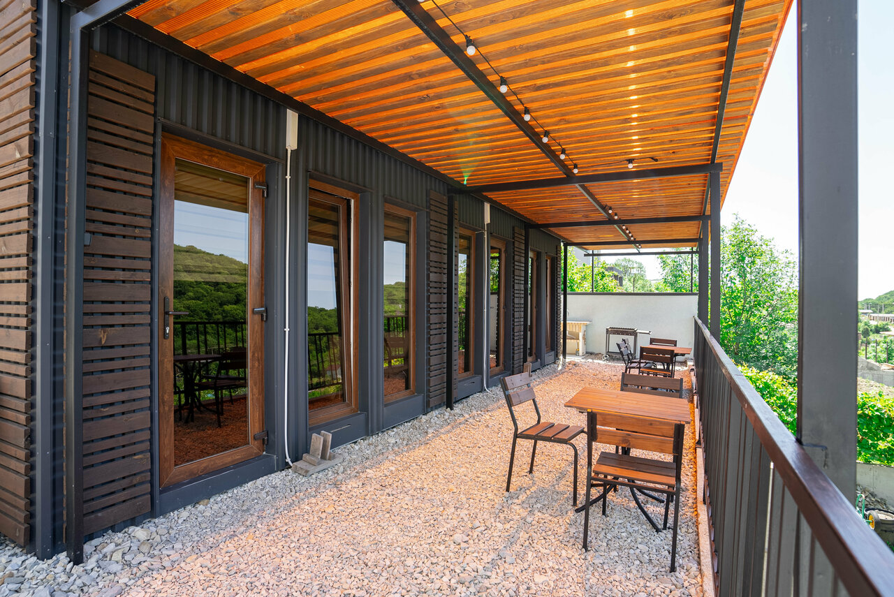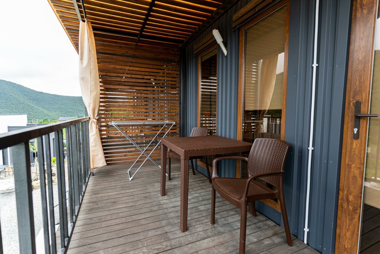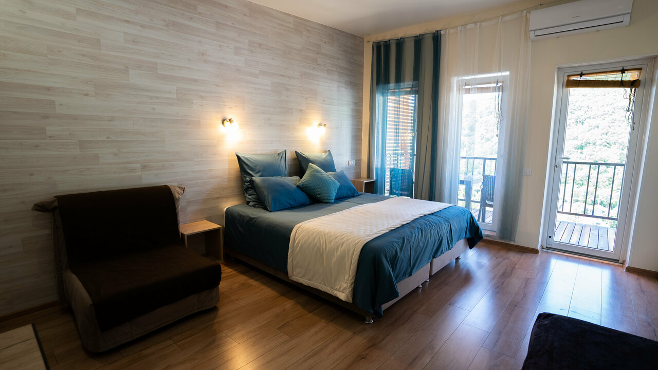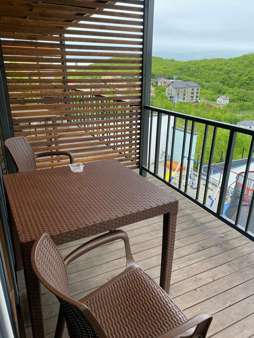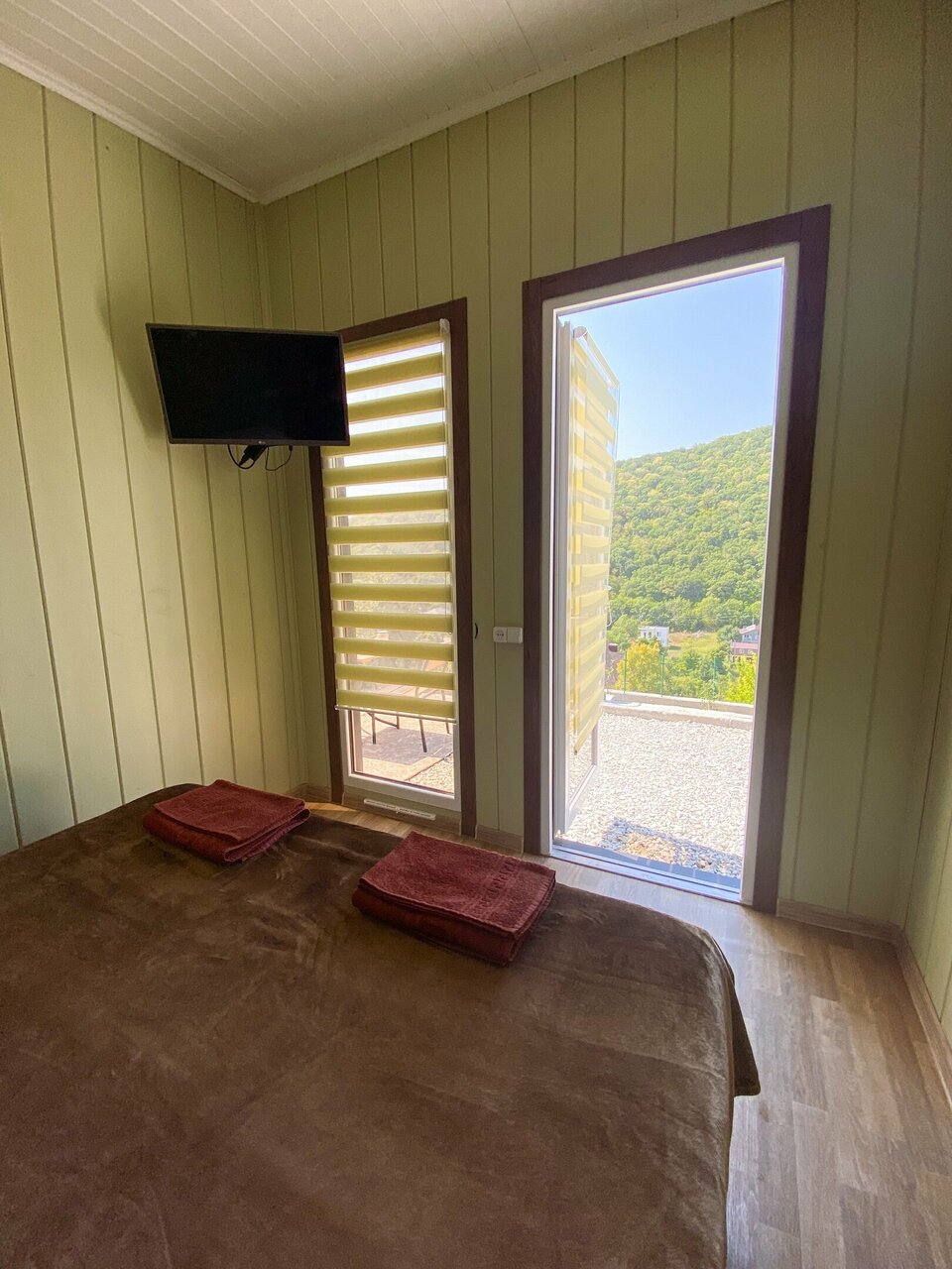 Замечательный отель. Номера уютные, есть кухня, все необходимые кухонные принадлежности (половник и даже прибор для разминания картошки в пюре). Вид из номера прекрасный — на гору. При выходе из номера веранда со столом и стульями. На территории расположена русская баня, очень просторная, на большую компанию. Провели в бане замечательный вечер, а после парилки ныряли в бассейн. Все очень понравилось. Хозяева доброжелательные и гостеприимные. Выражаем им благодарность.