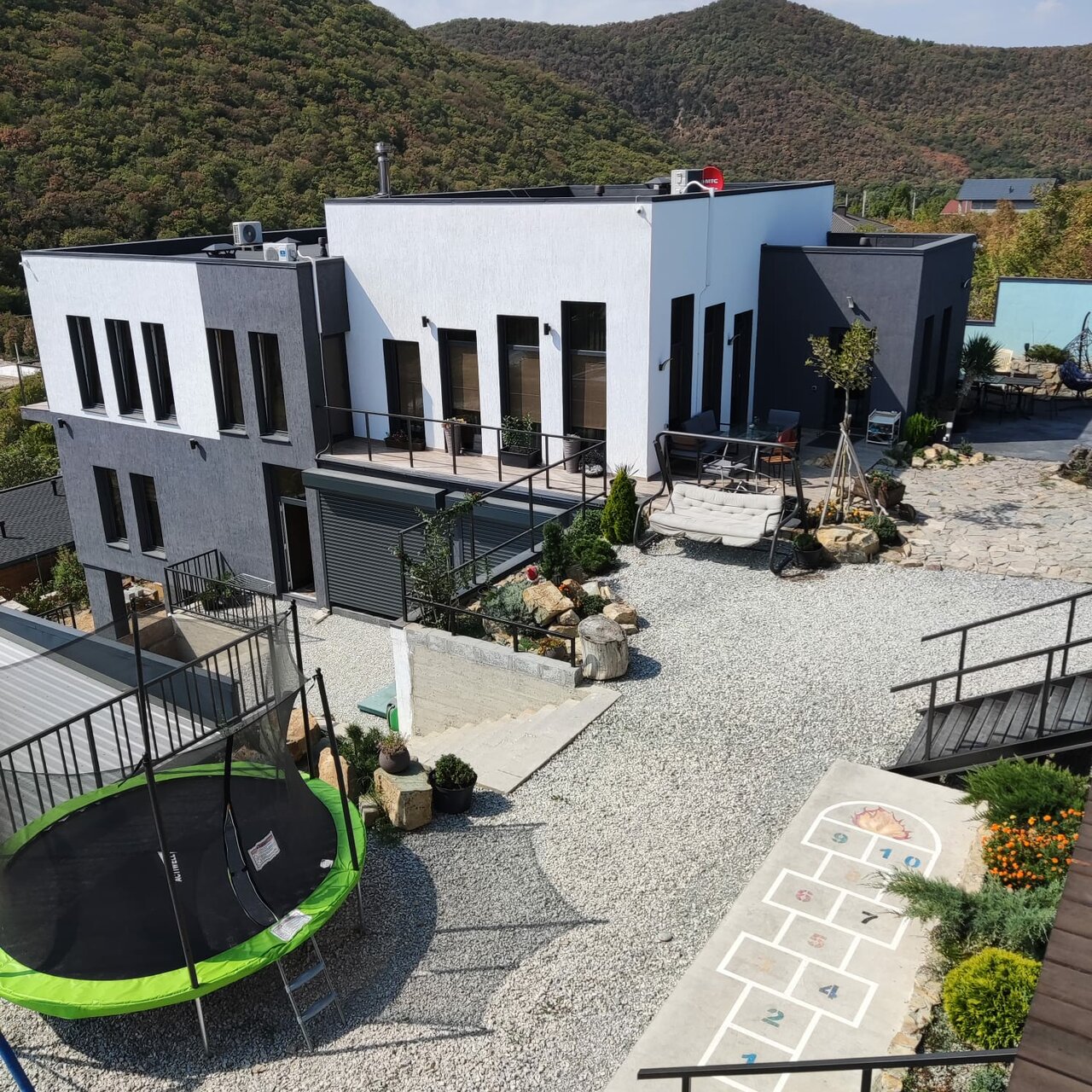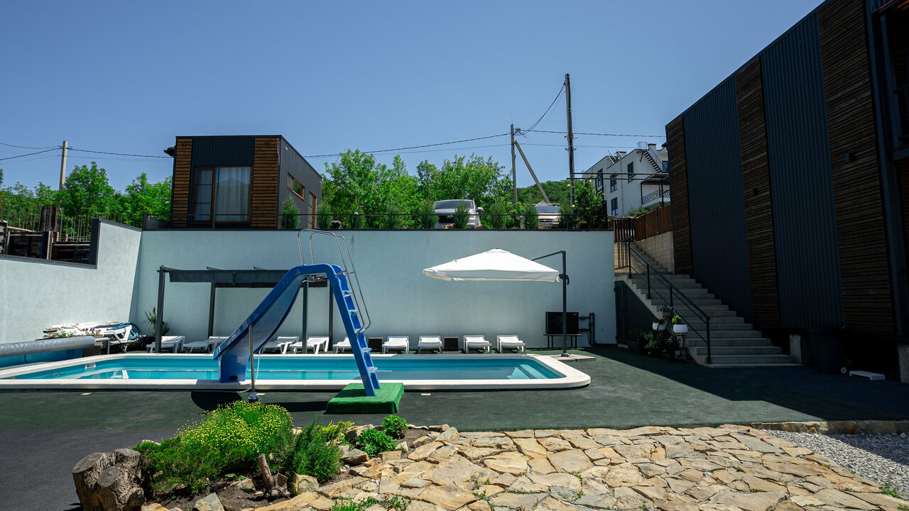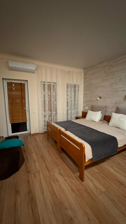 Отличный новый апарт-отель на 8 номеров. Уютный дворик с качелями. Прекрасный небольшой бассейн. Номера просторные, всё есть. Полная кухня, вся утварь, фен, утюг. Кондей отличный. Бельё, поло енца, уборка — всё супер! Обалденный вид с балкона на лесистую гору и посёлок внизу. Озеро рядом. Красота! Очень понравилось это место. Спасибо радушным, весёлым и свойским хозяевам Кате и Андрею! Мы обязательно приедем ещё! Хотя до моря пешком далековато и очень крутой спуск/подъём. Обратно тяжело по жаре… Лучше на машине. Но море красивейшее, живописная бухта, пляж оборудован, но довольно тихий и чистый. PS Магазинов в пешей доступности нет. До села Абрау Дюрсо 2.5 км по шоссе… Но ходит такси.